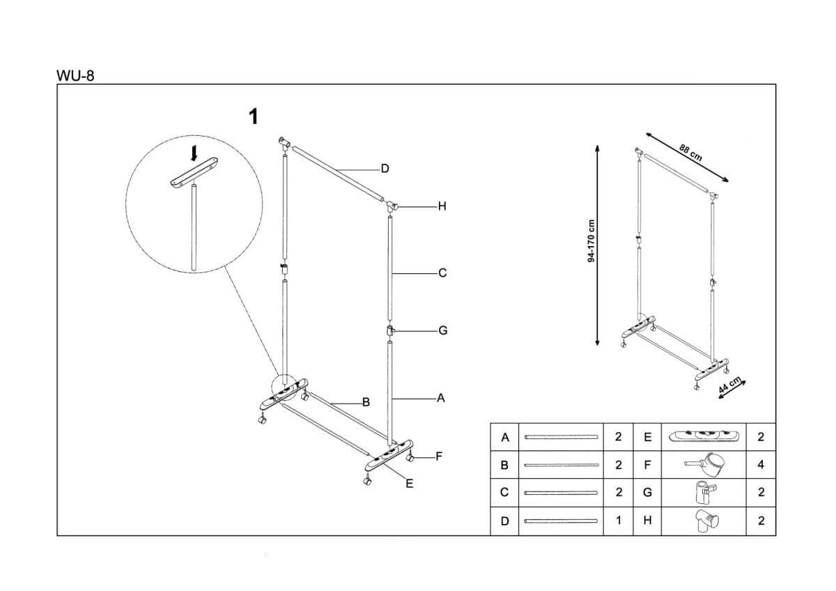 : экокожа / Вес, кг: 2,5 / Высота (см): 94-170 / Гарантия, мес.: 12 / Глубина (см): 44 / Количество коробок: 1 / Материал каркаса: сталь хромированная, пластик / Необходимость сборки: да / Размер упаковки 1: 0,86/0,23/0,07 / Страна производитель: Китай / Цвет: черный / Ширина (см): 88