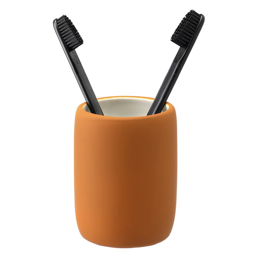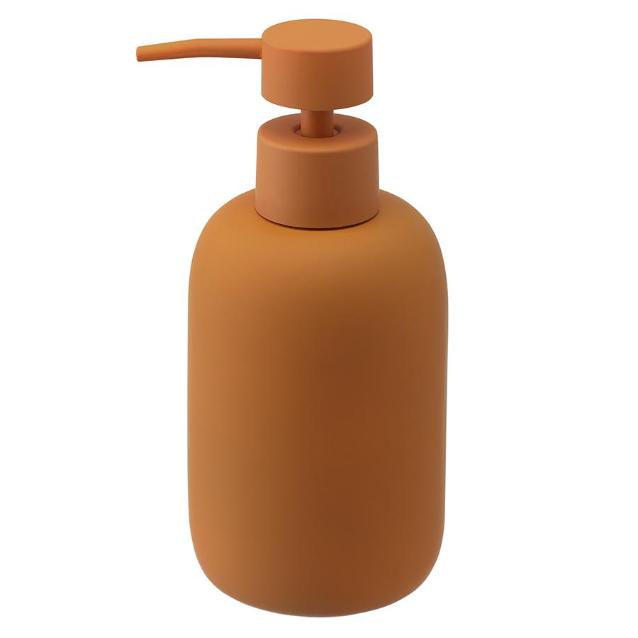 Набор ванных принадлежностей Flow теплого терракотового оттенка поможет организовать пространство вашей ванной комнаты и добавит в интерьер яркий акцент. В комплект входят диспенсер для жидкого мыла, стакан для зубных щеток, мыльница и специальная подставка. Все изделия выполнены из керамики и имеют специальное покрытие софт-тач, которое не только приятно на ощупь, но и обладает антискользящим эффектом. Особенности и преимущества: - Все изделия выполнены из качественной керамики, что обеспечивает им долговечность, привлекательный вид и простой уход. - Специальное покрытие предотвращает скольжение, гарантируя надежную фиксацию предметов и защищая их от падений, что особенно важно в условиях повышенной влажности. - На дне аксессуаров предусмотрены силиконовые ножки, которые обеспечивают дополнительную устойчивость на различных поверхностях. Они не встроены в основание товаров и при необходимости легко снимаются. - Эргономичная форма и небольшие размеры подставки позволяют размещать набор ванных принадлежностей в любом удобном месте. Материалы: диспенсер – керамика, ABS-пластик, полипропилен; стакан – керамика; мыльница – керамика; подставка – керамика. Размеры: диспенсер – 7,2х7,2х16,2 см; стакан – 7х7,5х10 см; мыльница – 14х10х2,5 см; подставка – 17х9х2,5 см. Объем диспенсера: 290 мл. Цвет: терракотовый. Количество предметов в наборе: 4 шт. Предметы можно мыть вручную в теплой мыльной воде.