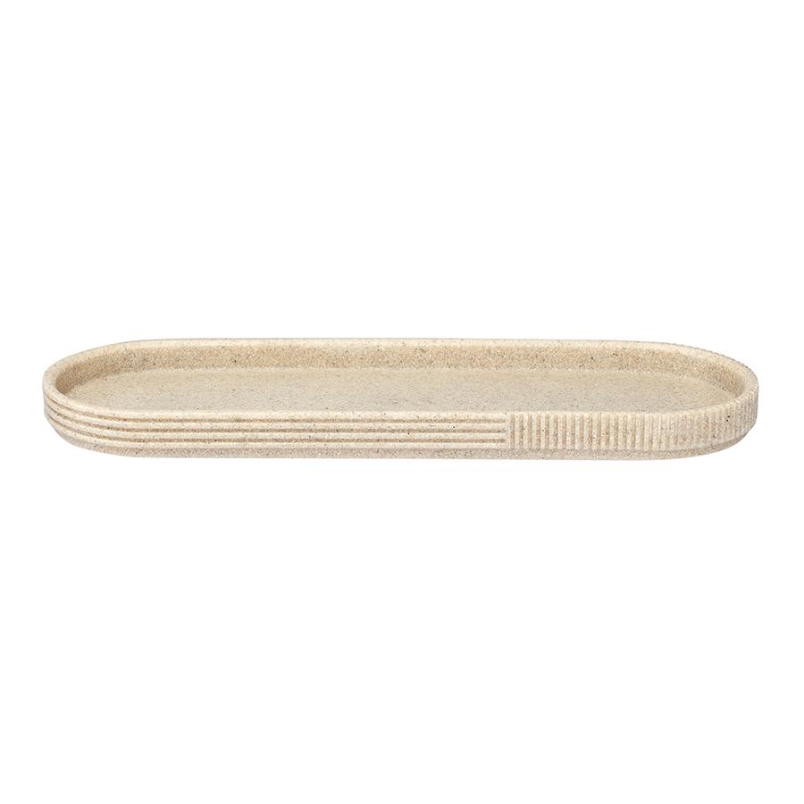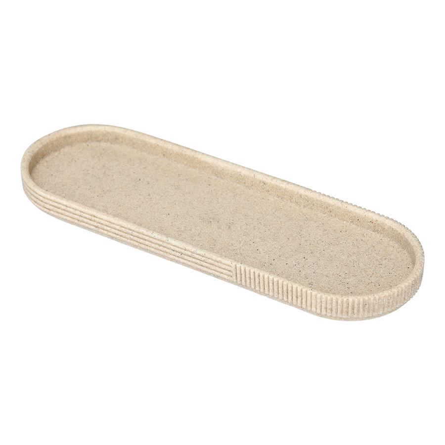 Подставка для ванных принадлежностей Dune – отличное решение для тех, кто любит сочетание базовых оттенков и необычных фактур. Особенности и преимущества: - Полирезин – экологичный, прочный, легкий, непористый материал, который не впитывает влагу и загрязнения, легко очищается и не бьется при падении. - Аксессуары базового песочного оттенка позволяют создать в интерьере теплую, уютную атмосферу и отлично комбинируются с предметами любых цветов. Материал: полирезин. Размеры: 28,2х9,5х2 см. Цвет: песочный. Можно очищать в теплой воде с помощью мягких моющих средств. Запрещается использование агрессивной бытовой химии и абразивных материалов.