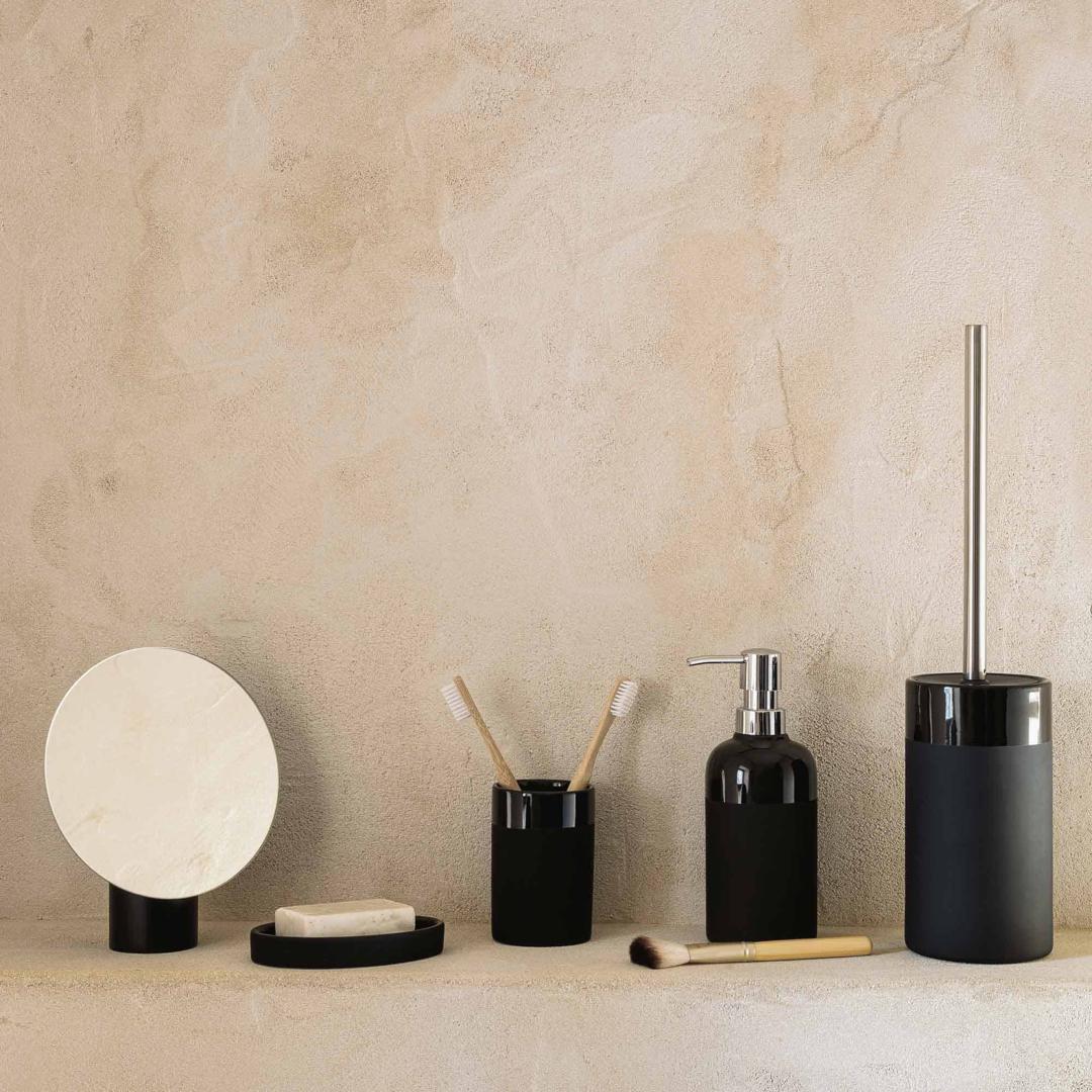 Набор аксессуаров для ванной Riga от фабрики La Forma (ex Julia Grup) – керамика и полирезин для эстетичного вида и защиты от влаги. Аксессуары для ванной Riga украсят вашу ванную комнату и создадут эффектные контрасты в дизайне. Глянцевая керамика здесь дополнена матовым полирезином, что демонстрирует многогранность цвета и улучшает эксплуатационные свойства изделий. Коллекция будет отражать ваш вкус и любовь к эстетике. А сложностей в использовании не будет! Коллекция состоит из пяти предметов: щетки, дозатора, мыльницы, стакана для зубных щеток, зеркала. Основной материал изготовления всех изделий – керамика с глянцевой обработкой. Стакан, дозатор и ершик имеют покрытие из матового полирезина, которая обеспечивает дополнительную защиту от негативного воздействия влаги, улучшает тактильные свойства. Рукоятка щетки и наконечник дозатора сделаны из нержавеющей стали, что обеспечивает долговечность и простоту в уходе. Ворс щетки выполнен из прочного полипропилена. Размеры: мыльница – 12,9 х 2 х 8 см; стакан для зубных щеток – 7 х 10,4 х 7 см. Каждую единицу коллекции можно приобрести отдельно.