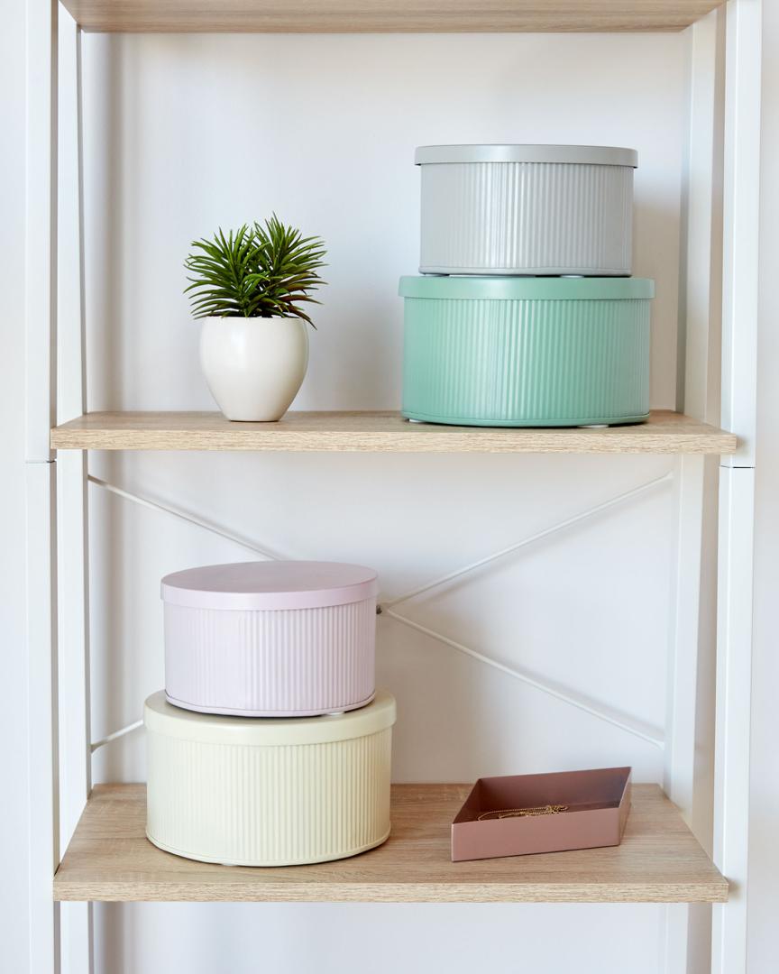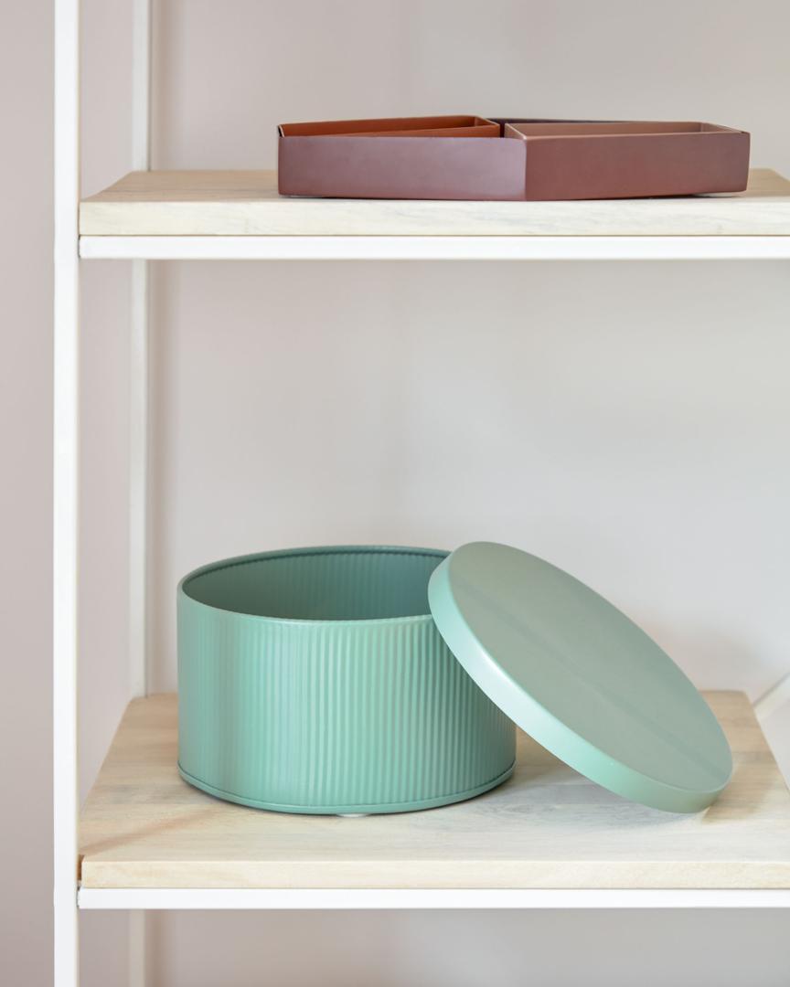 Коробки Quelia от фабрики La Forma (ex Julia Grup) – эстетичная и стильная упаковка для домашних мелочей. Коробки Quelia выглядят мило и сразу привлекают взгляд. Их фактурность и нежная цветовая гамма будут украшением для любой современной обстановки. К тому же, два размера и наличие плоских крышек позволят разместить коробки так, как вам будет удобно. Используйте всю коллекцию, и вам понравится общий вид полок вместе с Quelia! Коробки полностью сделаны из металла, окрашены матовой краской по методу порошкового покрытия. Такая технология обеспечивает идеальную поверхность, с равномерным прокрасом. В зависимости от выбранной модели, цвет коробки может быть розовым, светло-зеленым (тиффани) или серым. Коробки имеют круглую форму, с плоским дном и плоскими крышками. Фактура по контуру волнообразная. Крышки без защелок и замков. Для защиты полок и другой мебели от повреждений, снизу на коробках установлены защитные накладки. Они также обеспечивают шумоизоляцию. В коллекции представлено два варианта размера: ширина – 21/18 см, высота – 11/9,5 см, глубина – 21/18 см. Вес – 0,64/0,41 кг. Коробки не предназначены для уличного использования. Их следует чистить без использования абразивов и агрессивной химии.