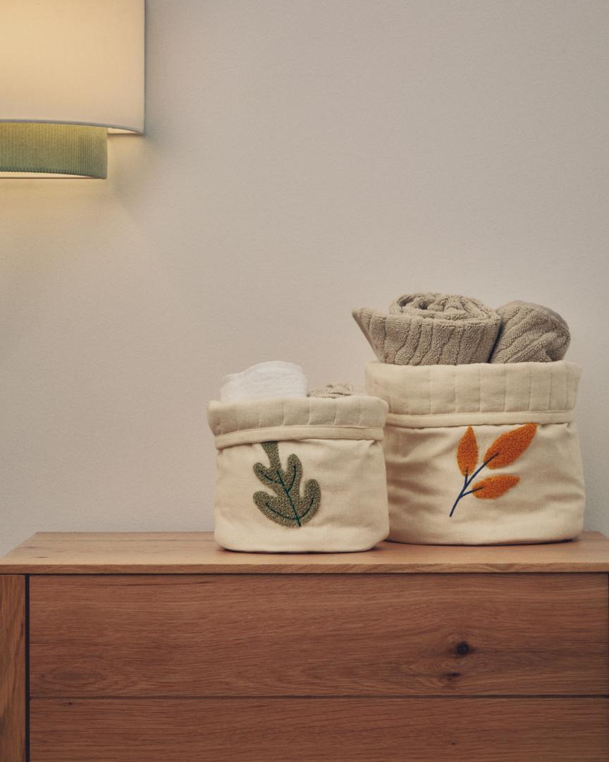 Аксессуары для ванной La Forma (ех Julia Grup) Набор из 2 детских корзинок из бежевого хлопка Tandani с вышитыми листьями арт. 434775