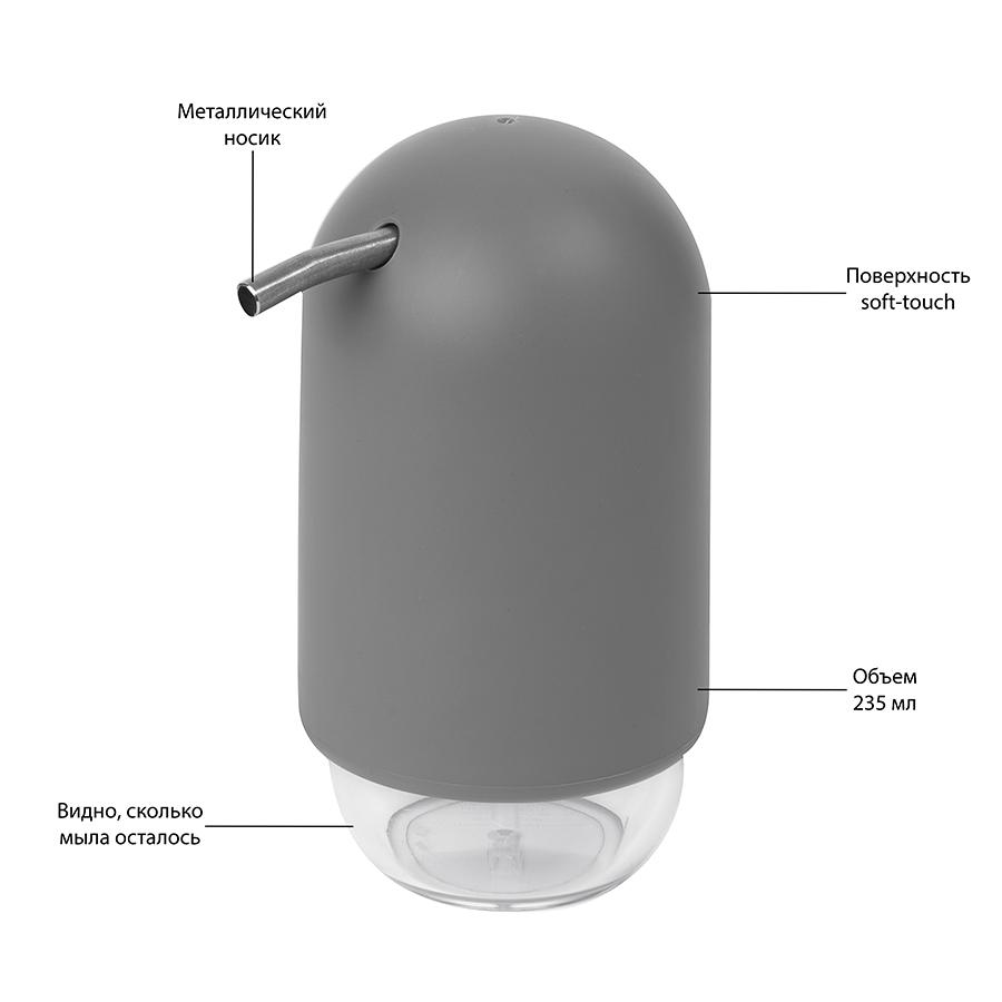Аксессуары для ванной Umbra Диспенсер для мыла touch, 235 мл, серый арт. 023273-918