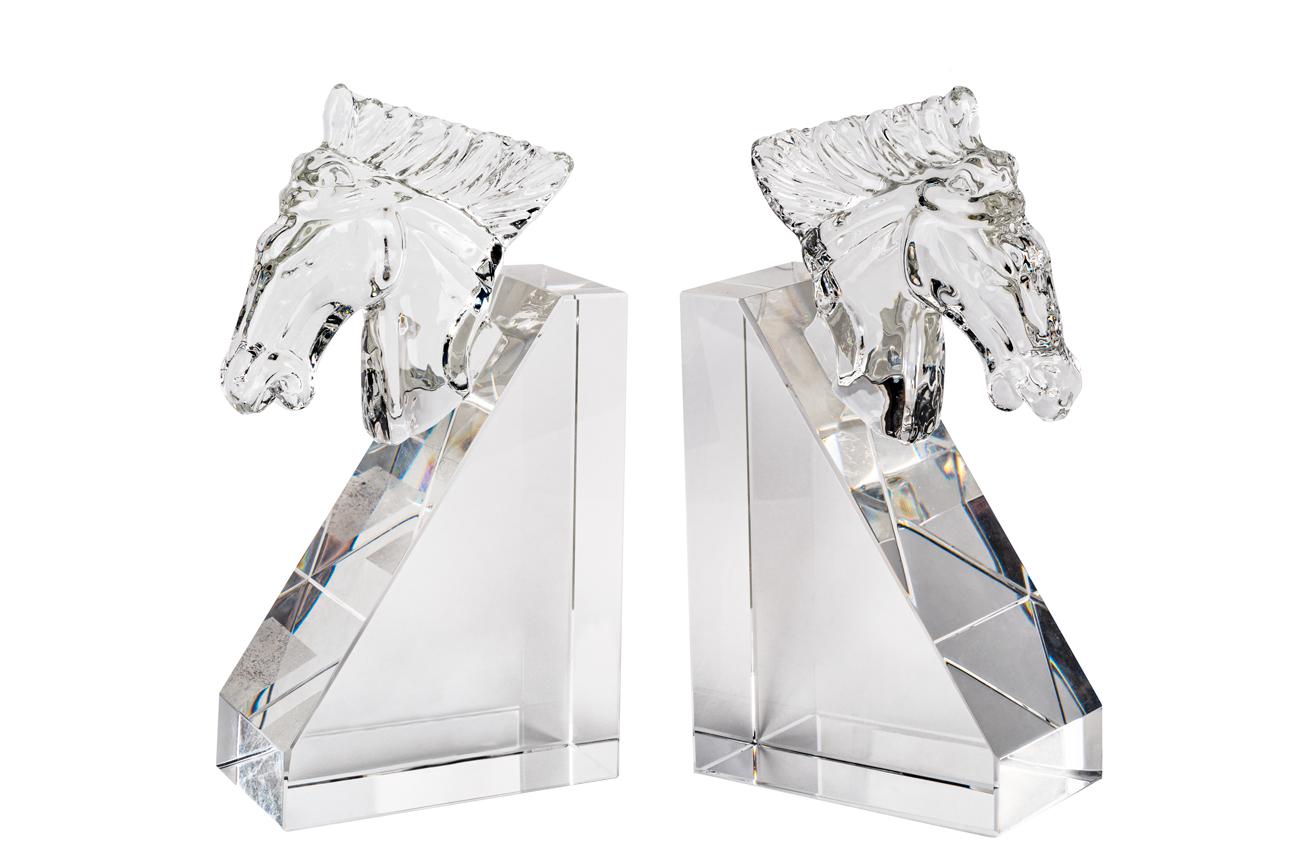 description-full - Изысканные держатели для книг из отического стекла станут роскошным украшением кабинета или гостиной, оформленной в стиле ар-деко. Подставки из прозрачного стекла выполнены в виде геометрических призм, декорированных фигурными головами лошадей. Декоративные держатели для книг, выполненные из благородного материала, создают в интерьере атмосферу роскоши и аристократизма. Стеклянные грани, играющие светом, притягивают взгляд и завораживают игрой света.