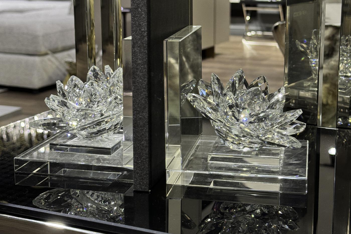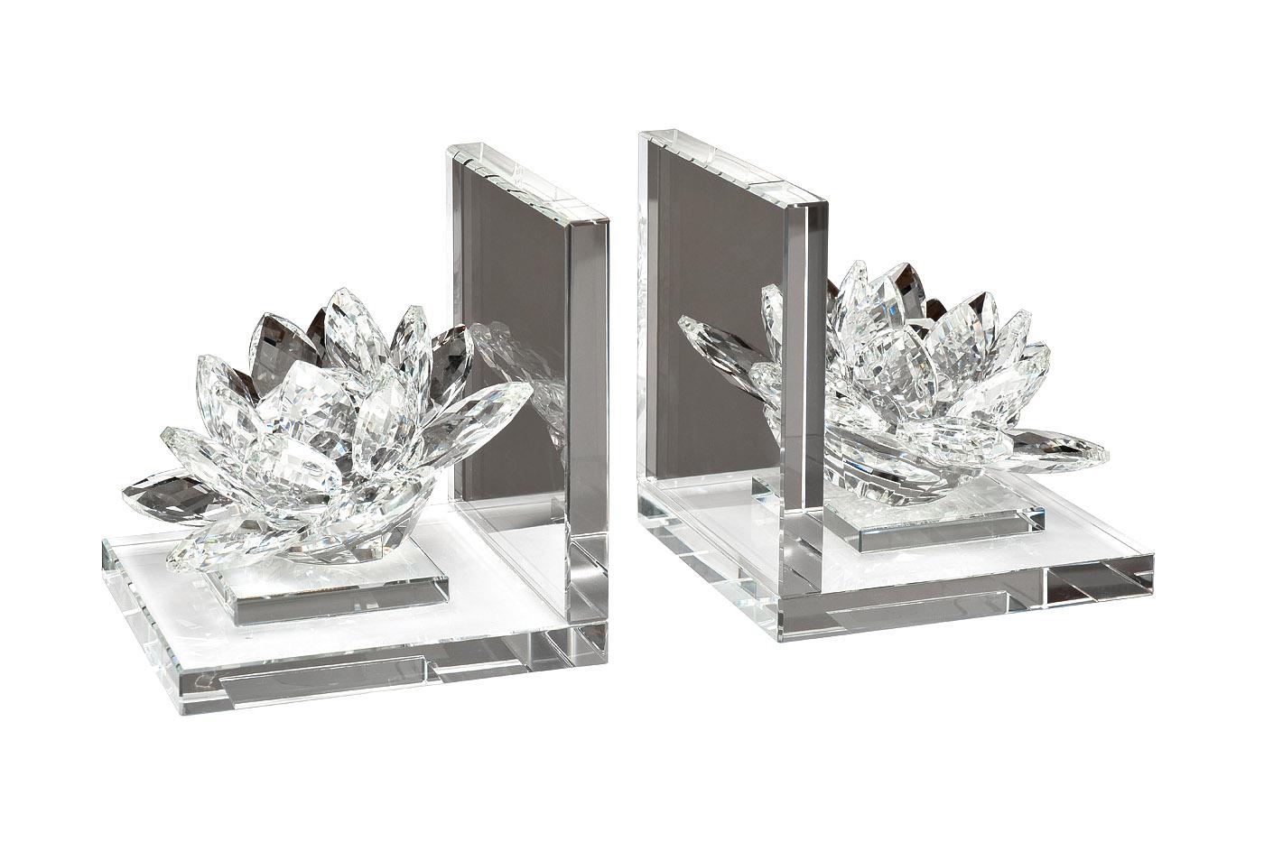 Прекрасные хрустальные лотосы украсят ваши полки или книжные шкафы. Достаточно тяжелые, чтобы поддержать в вертикальном положении несколько книг или журналов, лотосы служат самостоятельным интерьерным украшением. Гладкие отполированные держатели бережно о...
