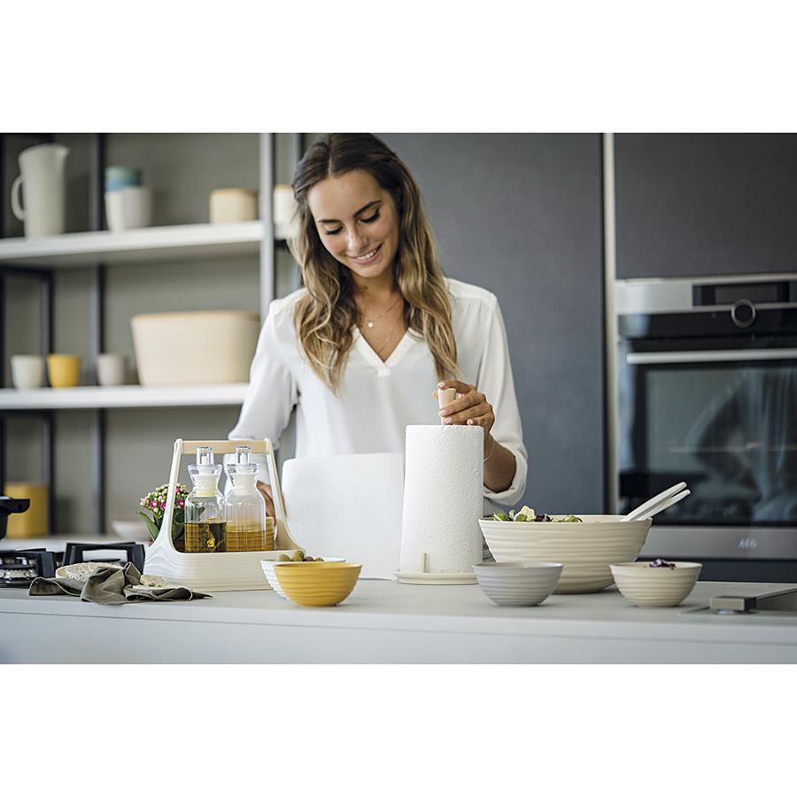 Настольный органайзер станет оригинальным украшением стола. В качестве исходного сырья выступают пластиковые бутылки объемом 1,5 л. Дизайн изделия напоминает керамику. Реалистичности внешнему виду придают тщательно подобранные пастельные цвета и намеренно неровные круговые рисунки, создающие эффект ручной работы. Органайзер отлично гармонирует с другими предметами коллекции Tierra.