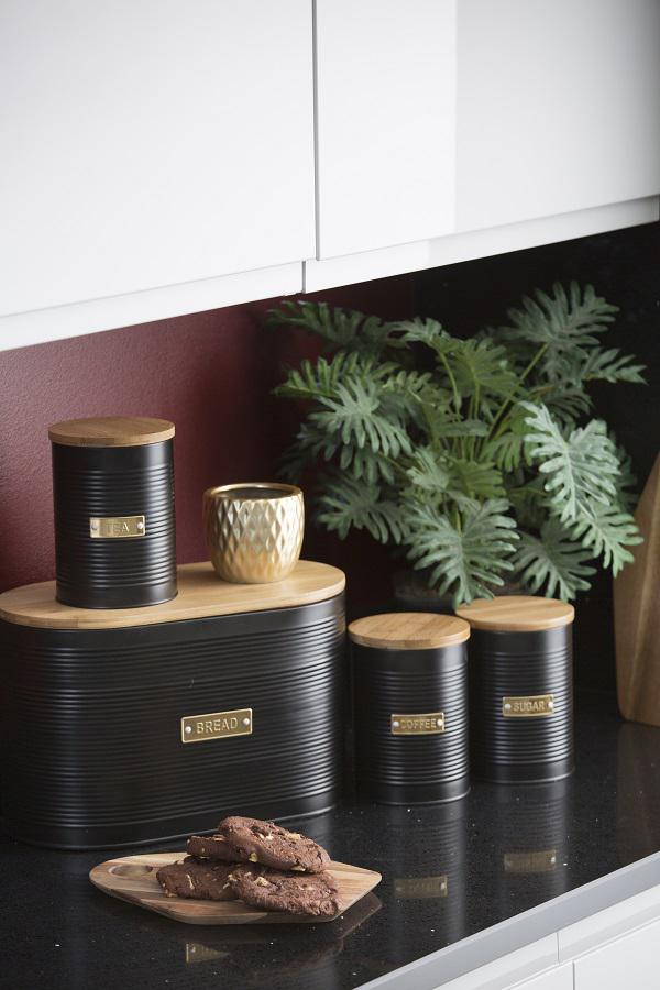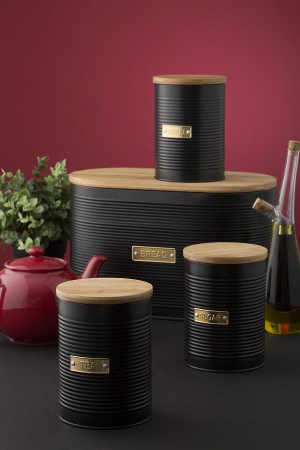 Емкость для хранения кофе Otto поможет организовать рабочее пространство на вашей кухне. Эргономичный контейнер выполнен из эмалированной стали, стойкой к коррозии и деформации. Бамбуковая крышка с воздухопроницаемым уплотнителем из силикона продлевает свежесть продуктов и защищает их от воздействия влаги. При создании изделия дизайнеры используют золотистый декор, который безупречно сочетается с матовым покрытием черного цвета. Благодаря этому емкость добавит элегантности классическому и современному интерьеру кухни.