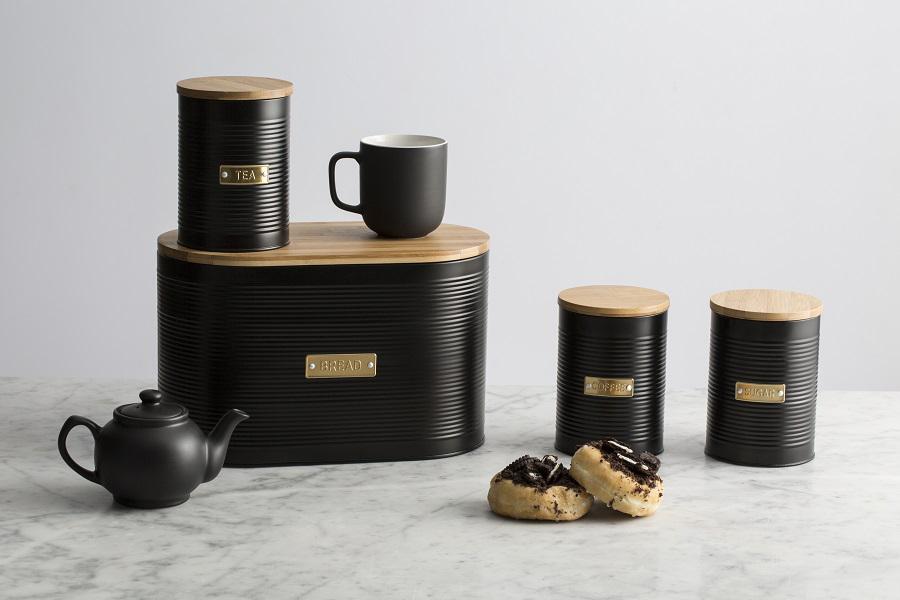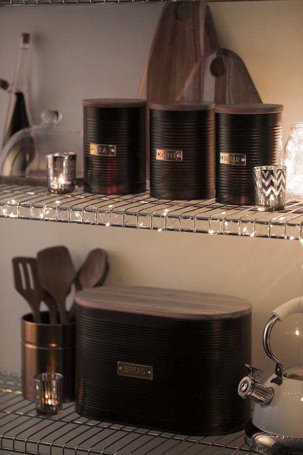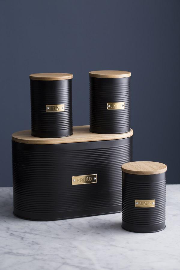Емкость для хранения сахара Otto поможет организовать рабочее пространство на вашей кухне. Эргономичный контейнер выполнен из эмалированной стали, стойкой к коррозии и деформации. Бамбуковая крышка с воздухопроницаемым уплотнителем из силикона продлевает свежесть продуктов и защищает их от воздействия влаги. При создании изделия дизайнеры используют золотистый декор, который безупречно сочетается с матовым покрытием черного цвета. Благодаря этому емкость добавит элегантности классическому и современному интерьеру кухни.
