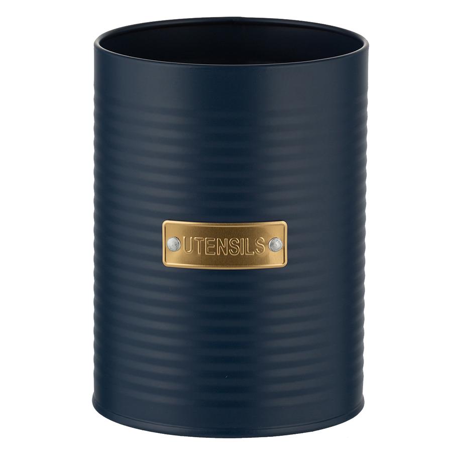 Емкость Otto – удобное решение для хранения кухонных инструментов и столовых приборов. Эргономичный контейнер выполнен из прочной, устойчивой к коррозии и деформации углеродистой стали. Рельефная поверхность и красивое сочетание золотистого декора с матовым покрытием насыщенного синего цвета делает дизайн интересным. Такой аксессуар отлично вписывается в интерьер, оформленный в классическом и современном стиле. Материалы: углеродистая сталь. Объем: 1,4 л. Цвет: синий. Перед первым использованием емкость рекомендуется хорошо вымыть вручную в теплой воде с мягким моющим средством. Запрещается применение абразивных материалов и агрессивной бытовой химии.