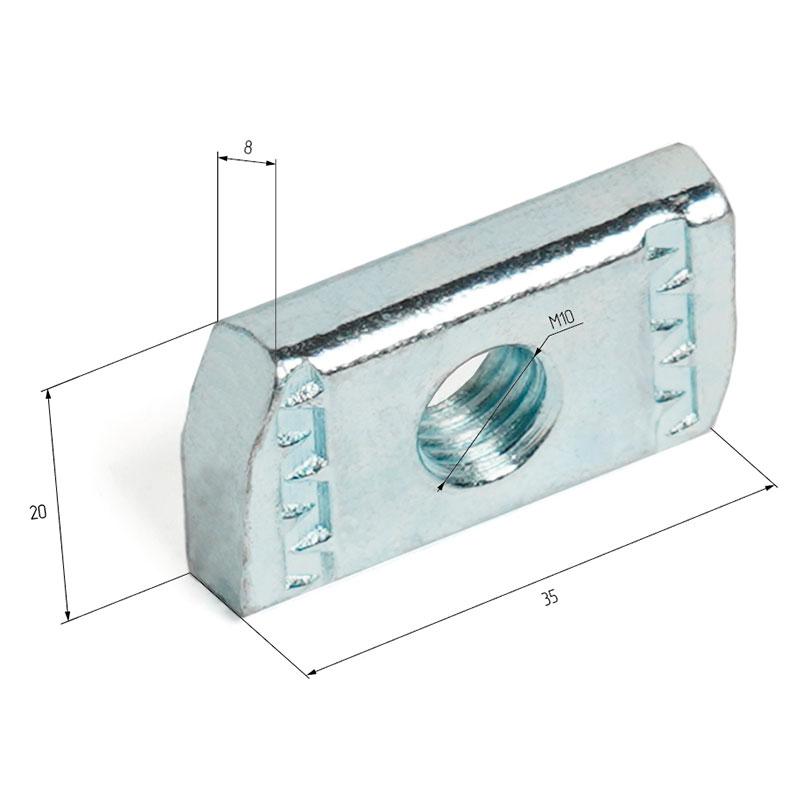 Канальная гайка М10 - предназначена для жесткого соединения всех типов профилей и несущих элементов монтажных систем.