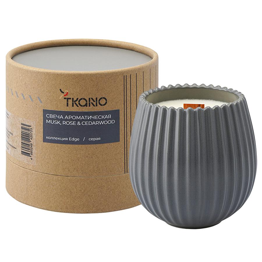 Свеча Tkano Свеча ароматическая с деревянным фитилём musk, rose & cedarwood из коллекции edge, серый, 60 ч арт. TK23-ARO0068