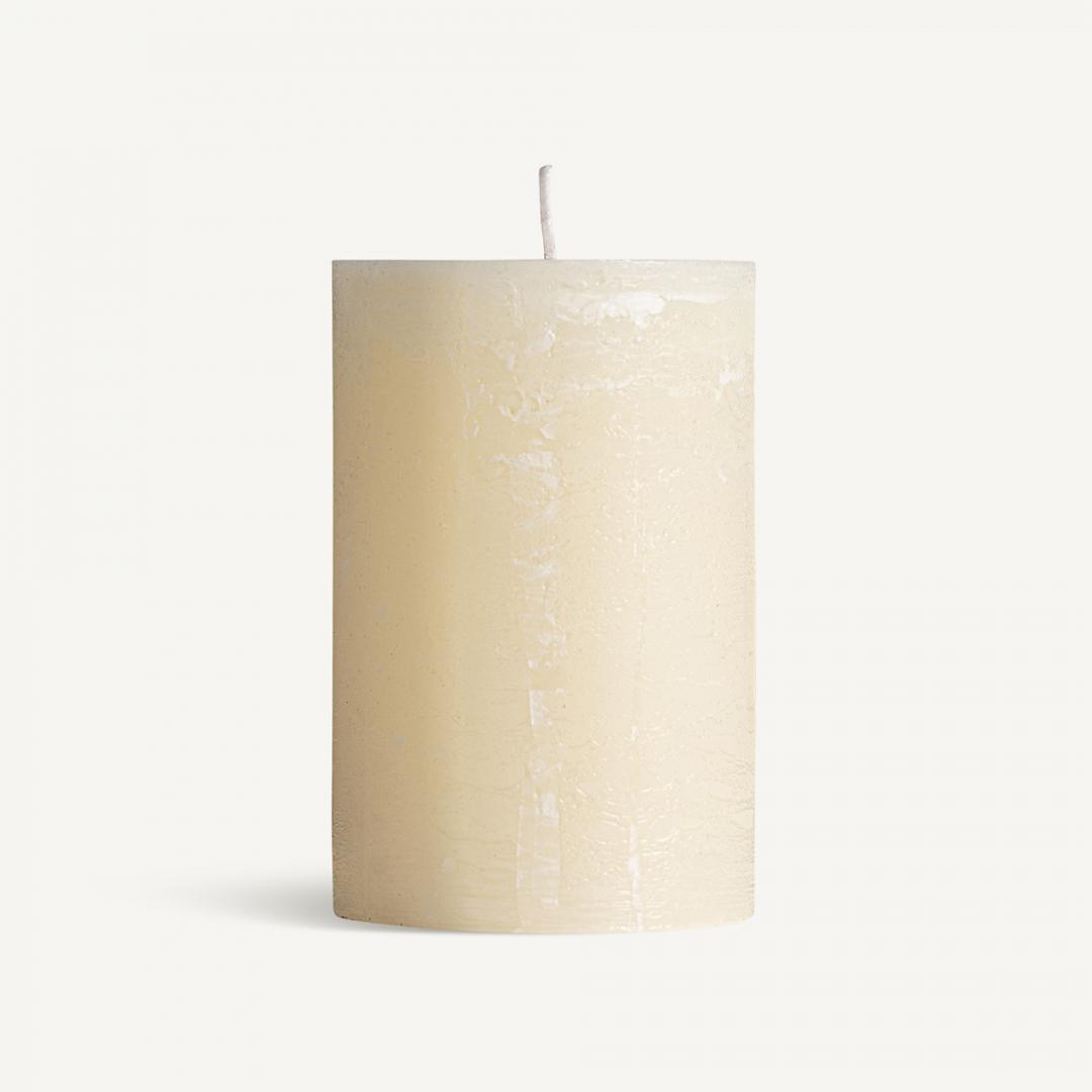 Круглая свеча, кремового цвета, классический стиль. Изготовлен из воска.