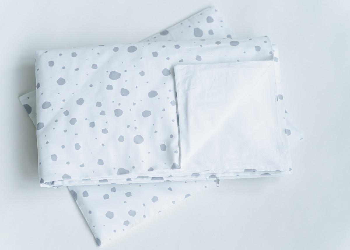 Постельное бельё в детскую кроватку (пятнышки серые, сатин) Состав: наволочка 32*42 см и пододеяльник 90*110 см