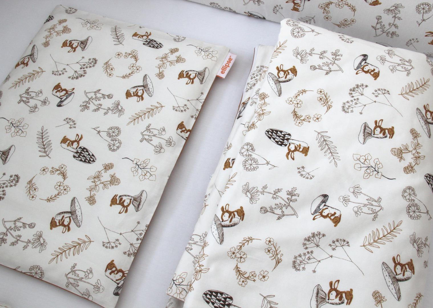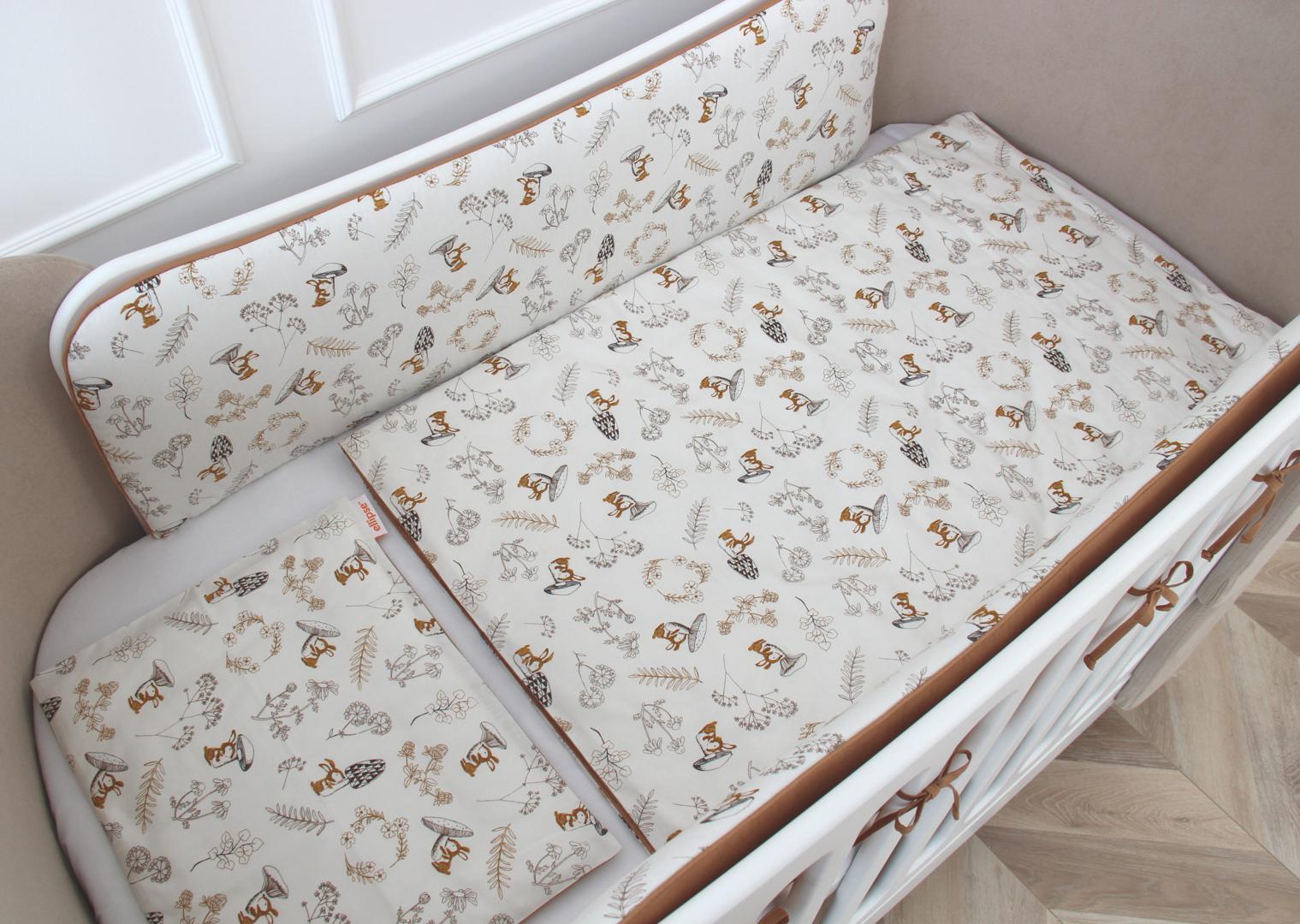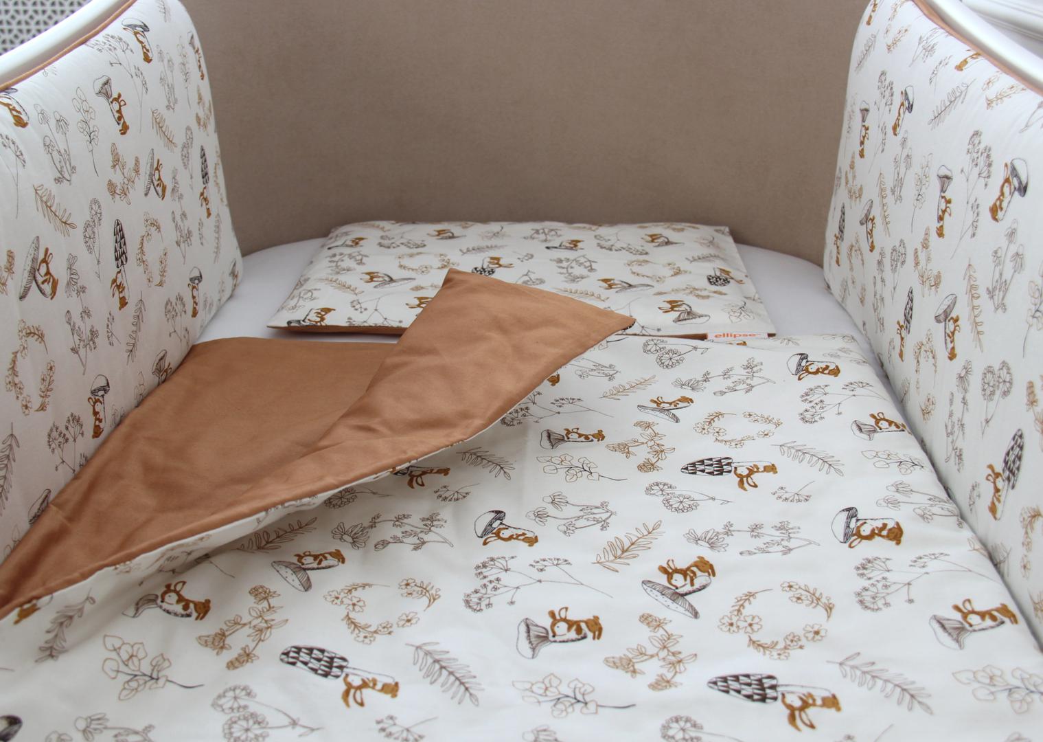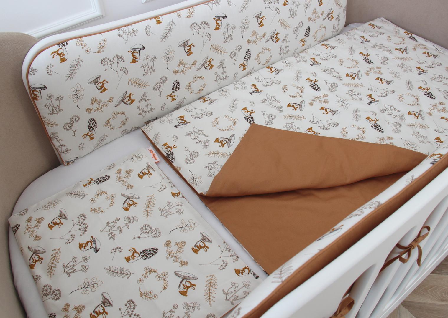 Аксессуар Ellipsefurniture Постельное бельё в детскую кроватку «Зайчики с грибами» (мокко, сатин). Состав: наволочка 40*32 см, пододеяльник 90*110 см арт. CLABBS01992199