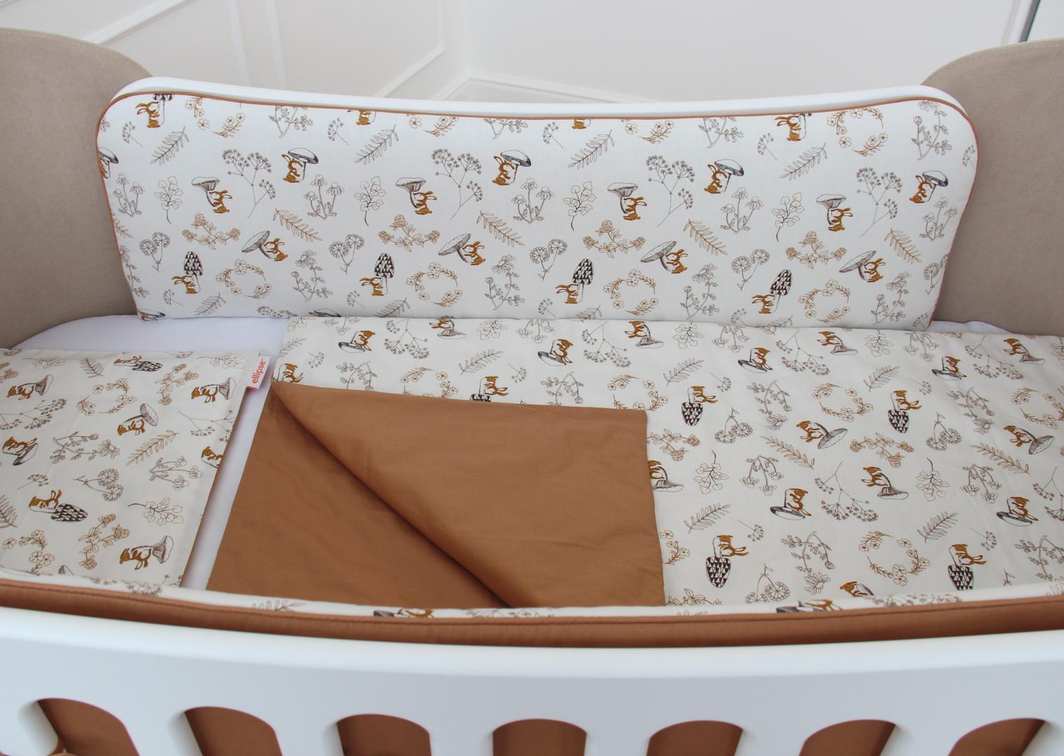 Аксессуар Ellipsefurniture Мягкие бортики для кроватки KIDI soft "Зайчики с грибами" (мокко, сатин) арт. TX02451940346