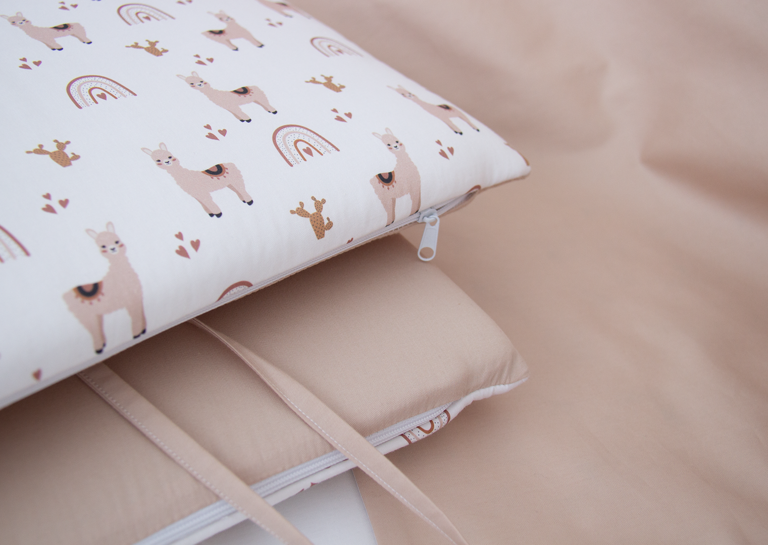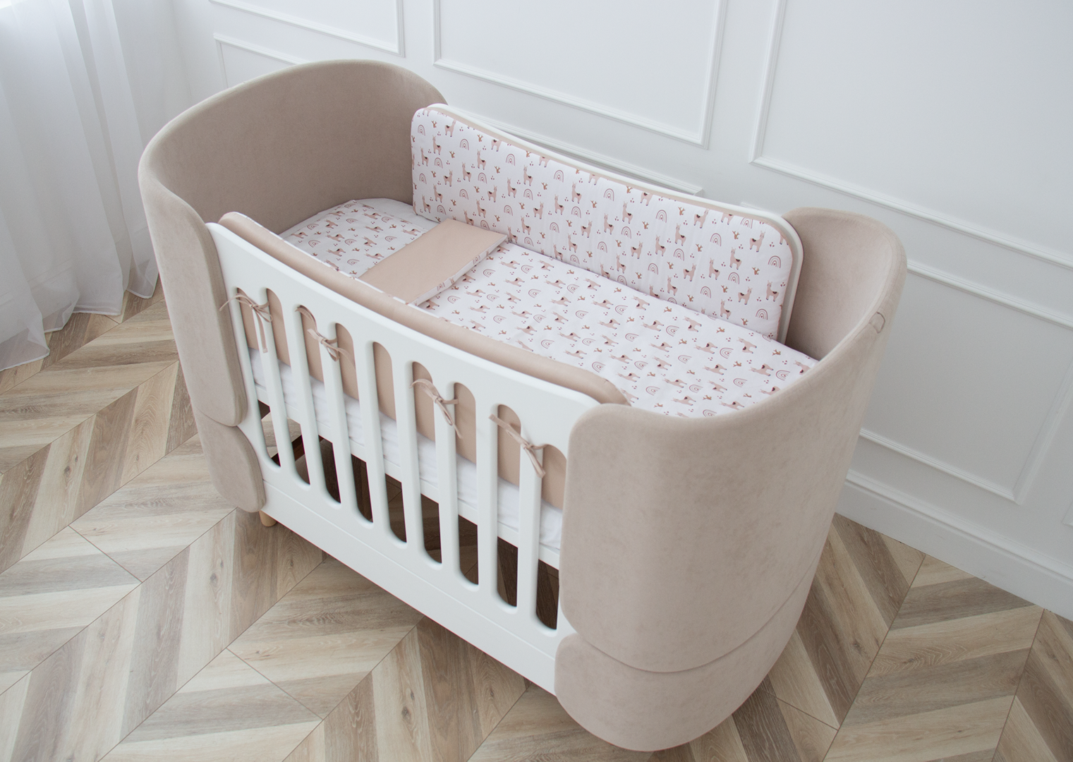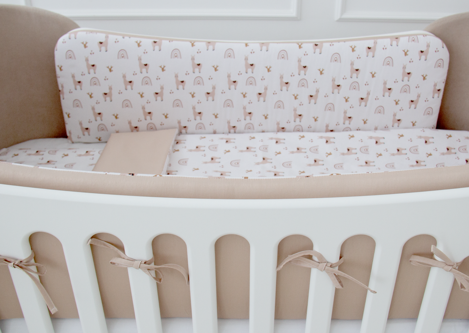 Аксессуар Ellipsefurniture Мягкие бортики для кроватки KIDI soft "Лама" (бежевый, сатин) арт. TX02451940346