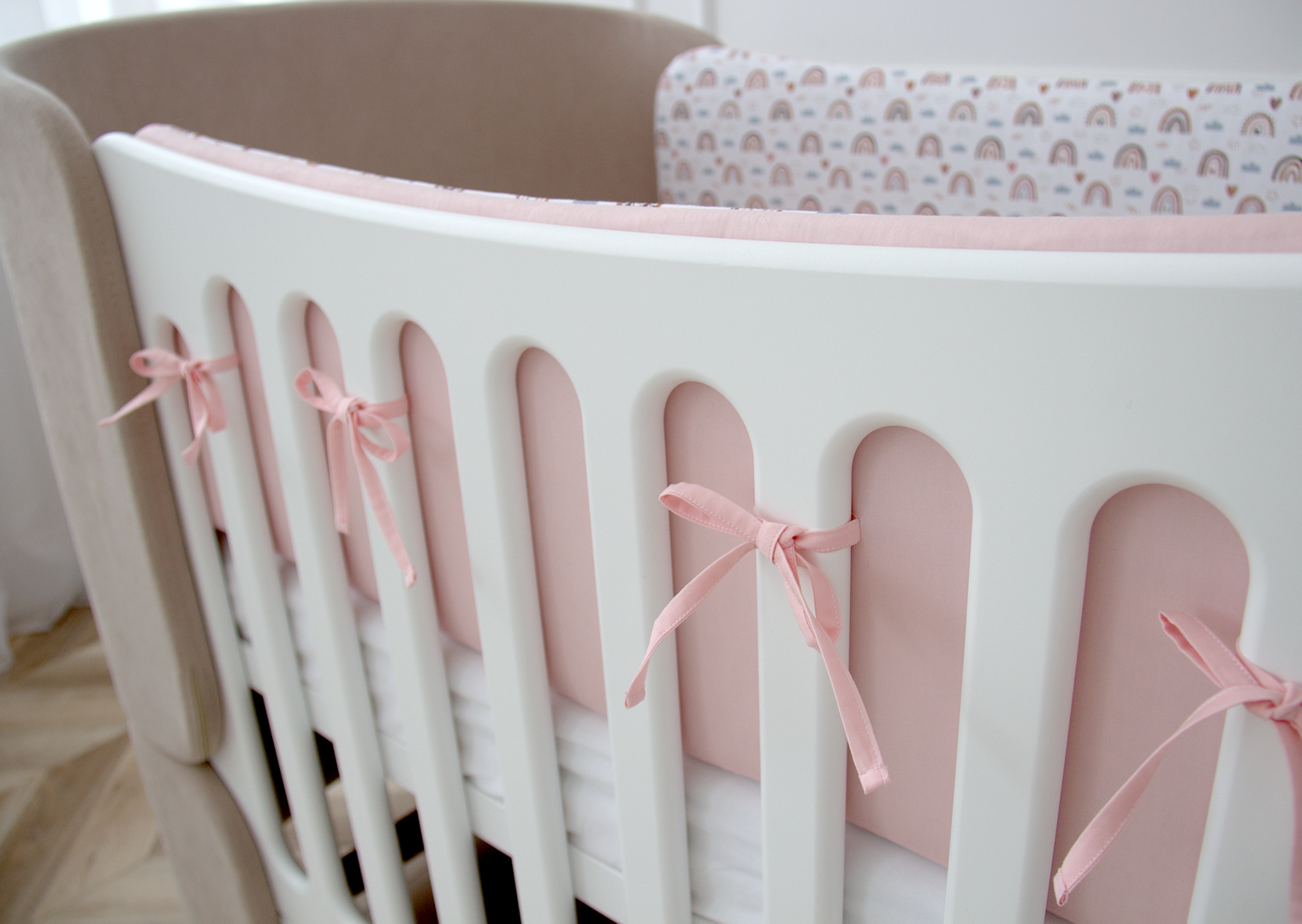 Аксессуар Ellipsefurniture Мягкие бортики для кроватки KIDI soft "Милая радуга" (розовый, сатин) арт. TX02451940446