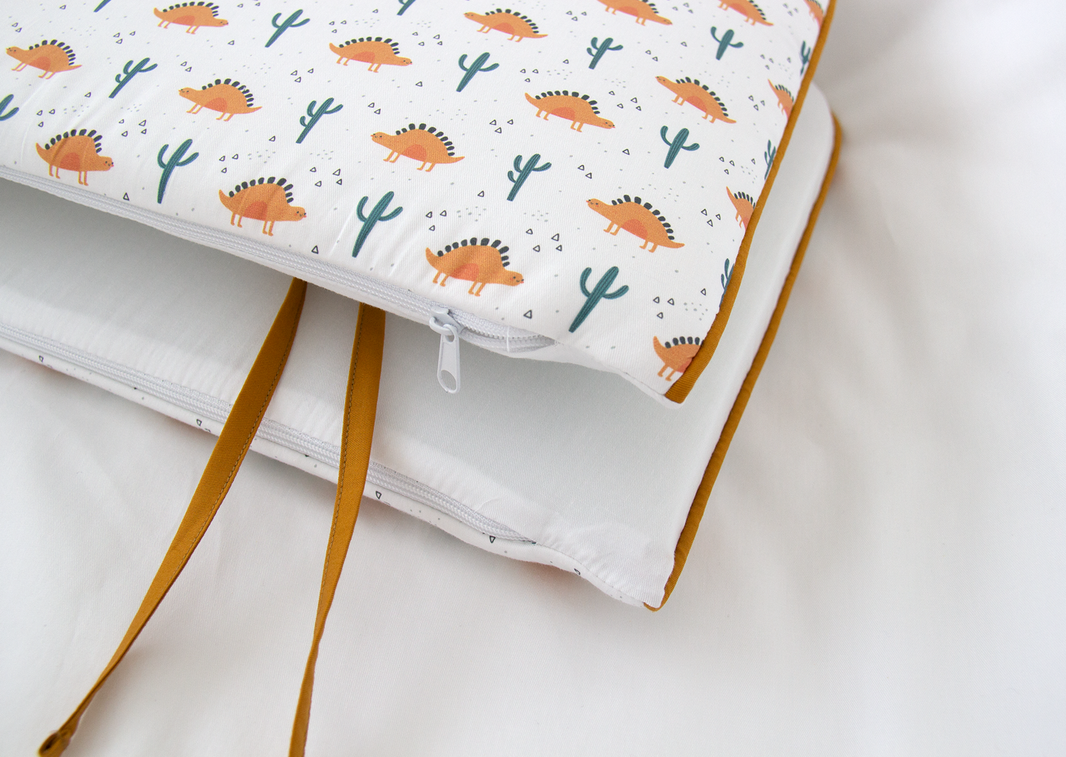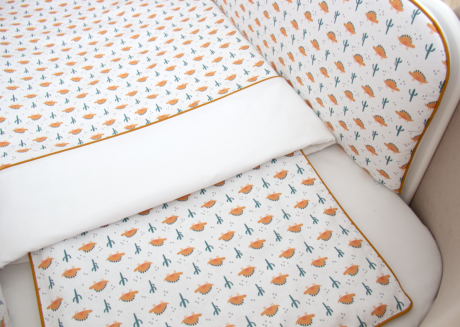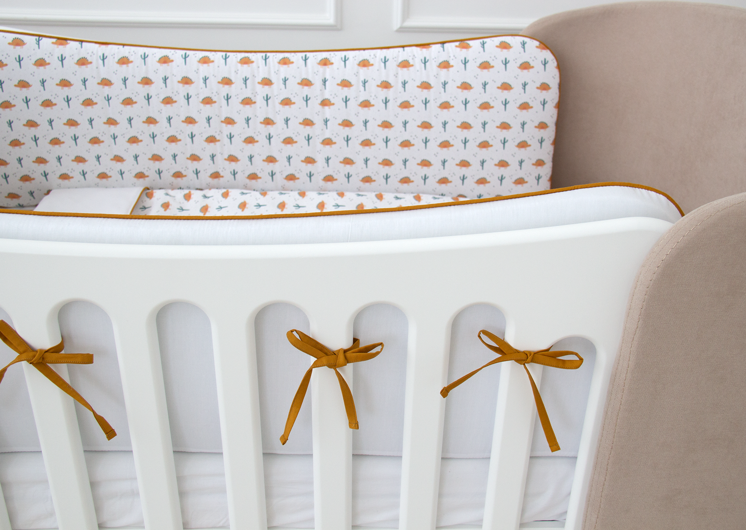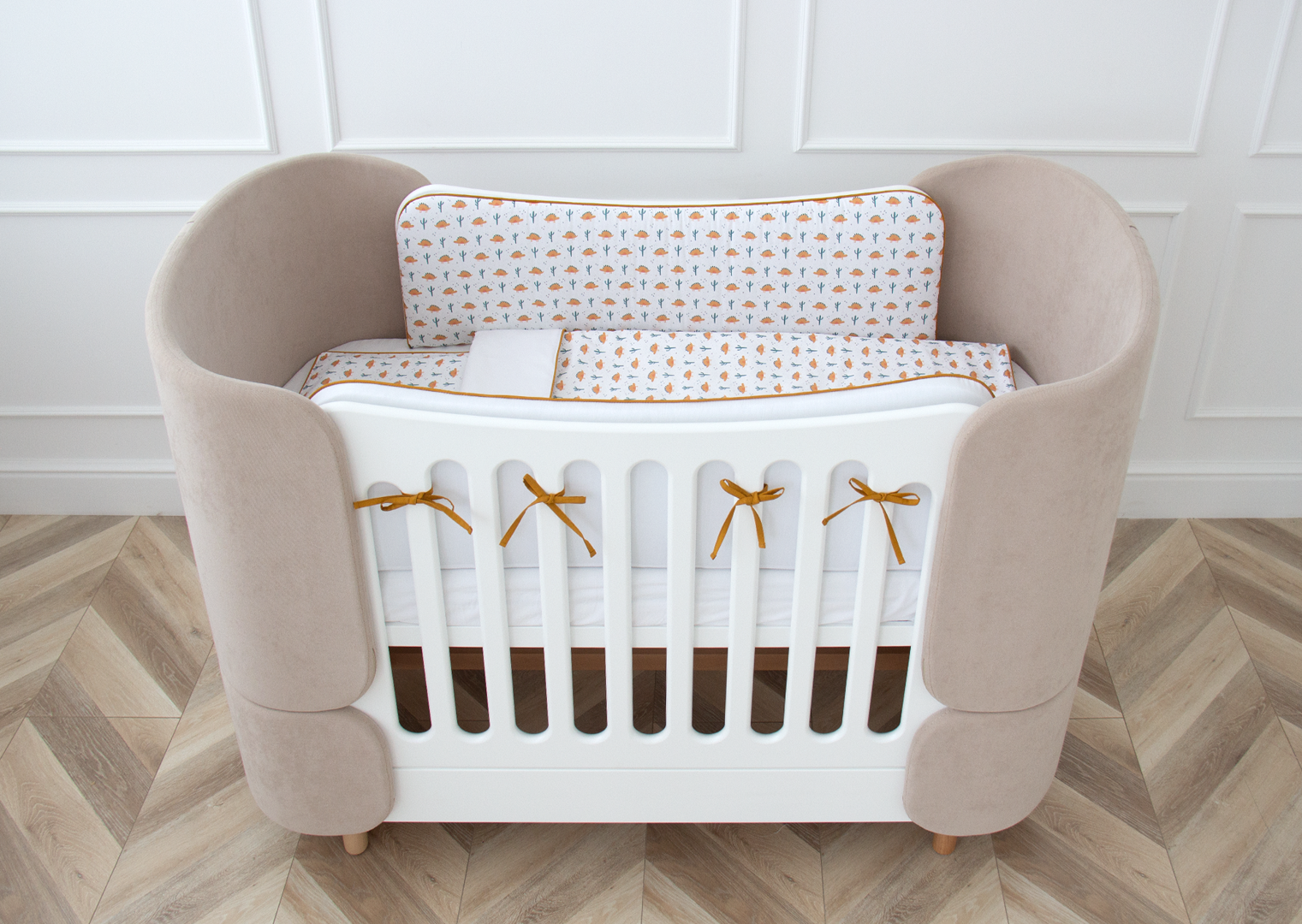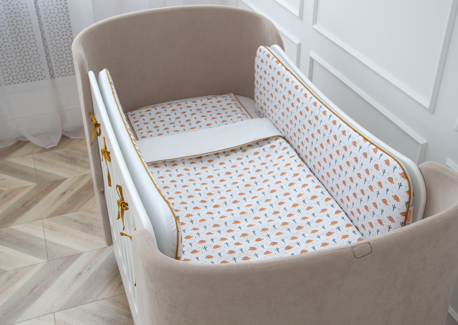 Аксессуар Ellipsefurniture Мягкие бортики для кроватки KIDI soft "Жёлтые динозаврики" (кант, сатин) арт. TX02458140246