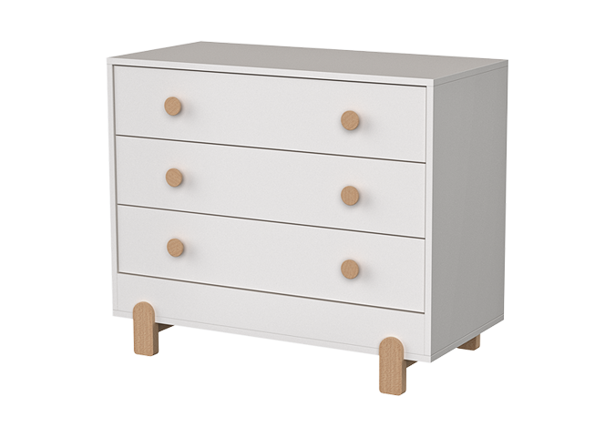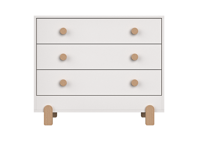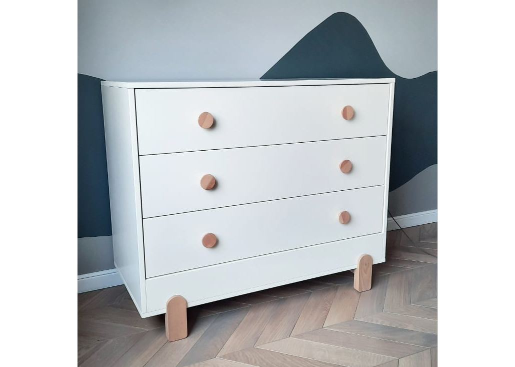 Комод Ice-cream в легком скандинавском стиле имеет уютный ненавязчивый дизайн, который прекрасно впишется в интерьер детской комнаты Ручки и ножки комода выполнены из натурального бука Корпус из МДФ под цветной эмалью У комода три вместительных ящика на бесшумных направляющих с доводчиками В дополнении, можно заказать пеленальную доску, которая надежно фиксируются за заднюю стенку комода и не портит его поверхности