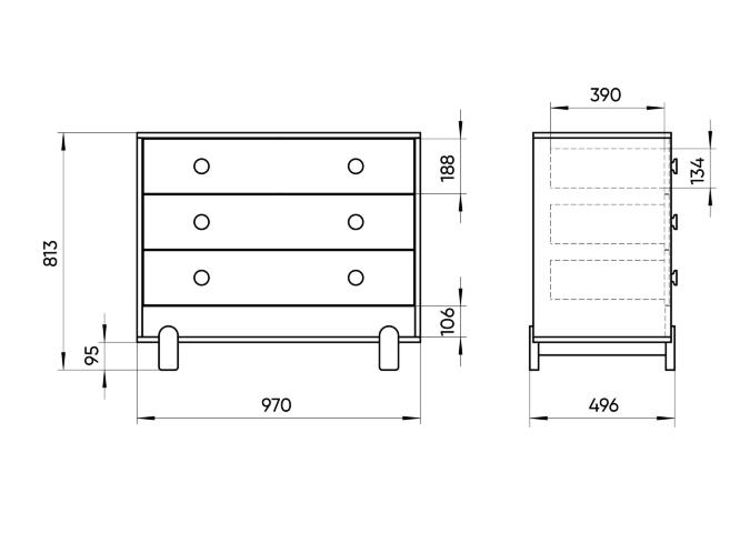Комод Ice-cream в легком скандинавском стиле имеет уютный ненавязчивый дизайн, который прекрасно впишется в интерьер детской комнаты Ручки и ножки комода выполнены из натурального бука Корпус из МДФ под цветной эмалью У комода три вместительных ящика на бесшумных направляющих с доводчиками В дополнении, можно заказать пеленальную доску, которая надежно фиксируются за заднюю стенку комода и не портит его поверхности