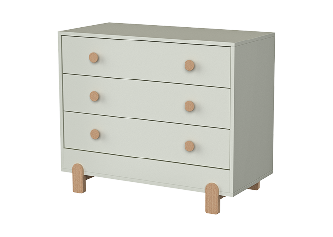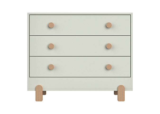 Комод Ice-cream в легком скандинавском стиле имеет уютный ненавязчивый дизайн, который прекрасно впишется в интерьер детской комнаты Ручки и ножки комода выполнены из натурального бука Корпус из МДФ под цветной эмалью У комода три вместительных ящика на бесшумных направляющих с доводчиками В дополнении, можно заказать пеленальную доску, которая надежно фиксируются за заднюю стенку комода и не портит его поверхности