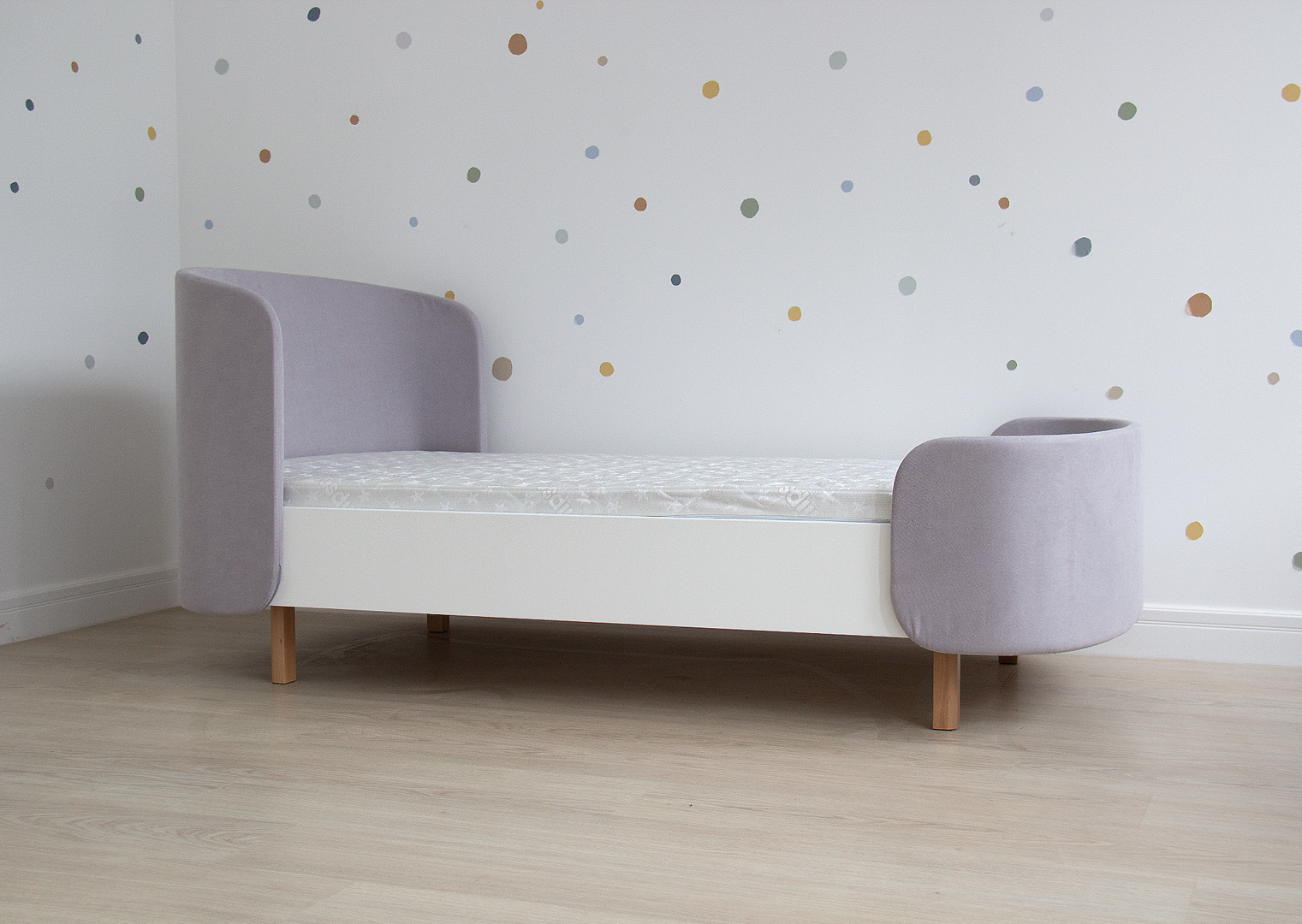 Подростковая кровать KIDI Soft подходит детям от 3 до 14 лет Размер М (спальное место 80*180 см) Закруглённые углы и мягкая приятная на ощупь обивка делают кровать уютной и безопасной. Съемные чехлы, при необходимости можно снять и постирать или поменять цвет обивки Для безопасности на кровать можно установить один или два защитных бортика *Защитный бортик докупается отдельно *Матрас докупается отдельно Материал: бук, береза Чехлы: ткань микрошенилл