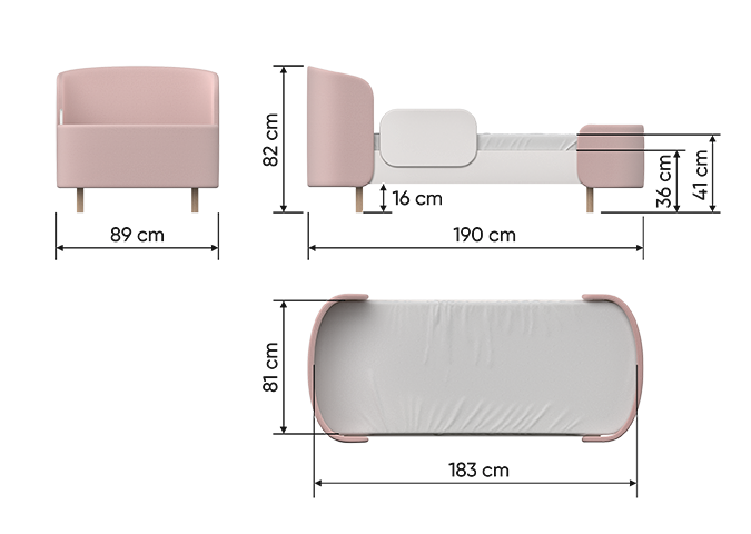Подростковая кровать KIDI Soft подходит детям от 3 до 14 лет Размер М (спальное место 80*180 см) Закруглённые углы и мягкая приятная на ощупь обивка делают кровать уютной и безопасной. Съемные чехлы, при необходимости можно снять и постирать или поменять цвет обивки Для безопасности на кровать можно установить один или два защитных бортика *Защитный бортик докупается отдельно *Матрас докупается отдельно Материал: бук, береза Чехлы: ткань микрошенилл