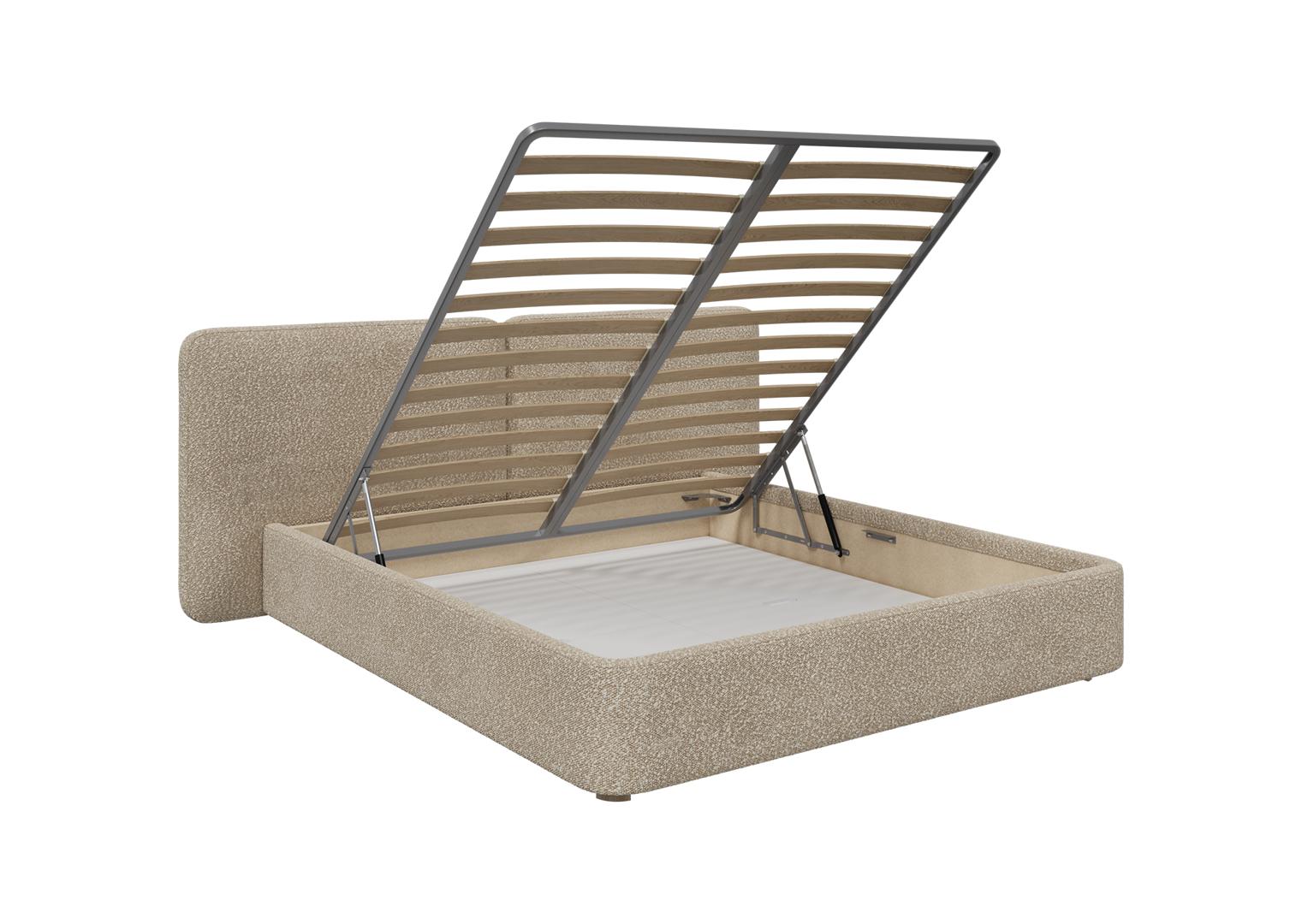 Двуспальная кровать Hub Soft с подъемным механизмом и ящиком для хранения Размер спального места 180*200 см Внешние габариты: 235*100*220* см - ширина по изголовью 235 см - ширина кровати (спального места) 188 см - высота изголовья 100 см Каркас выполнен из массива березы Обивка: ткань букле Ножки: бук