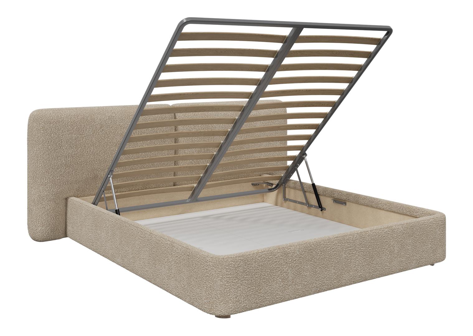Двуспальная кровать Hub Soft с подъемным механизмом и ящиком для хранения Размер спального места 200*200 см Внешние габариты: 255*100*220* см - ширина по изголовью 255 см - ширина кровати (спального места) 208 см - высота изголовья 100 см Каркас выполнен из массива березы Обивка: ткань букле Ножки: бук