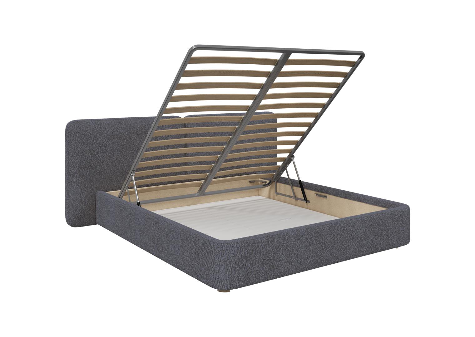 Двуспальная кровать Hub Soft с подъемным механизмом и ящиком для хранения Размер спального места 180*200 см Внешние габариты: 235*100*220* см - ширина по изголовью 235 см - ширина кровати (спального места) 188 см - высота изголовья 100 см Каркас выполнен из массива березы Обивка: ткань букле Ножки: бук