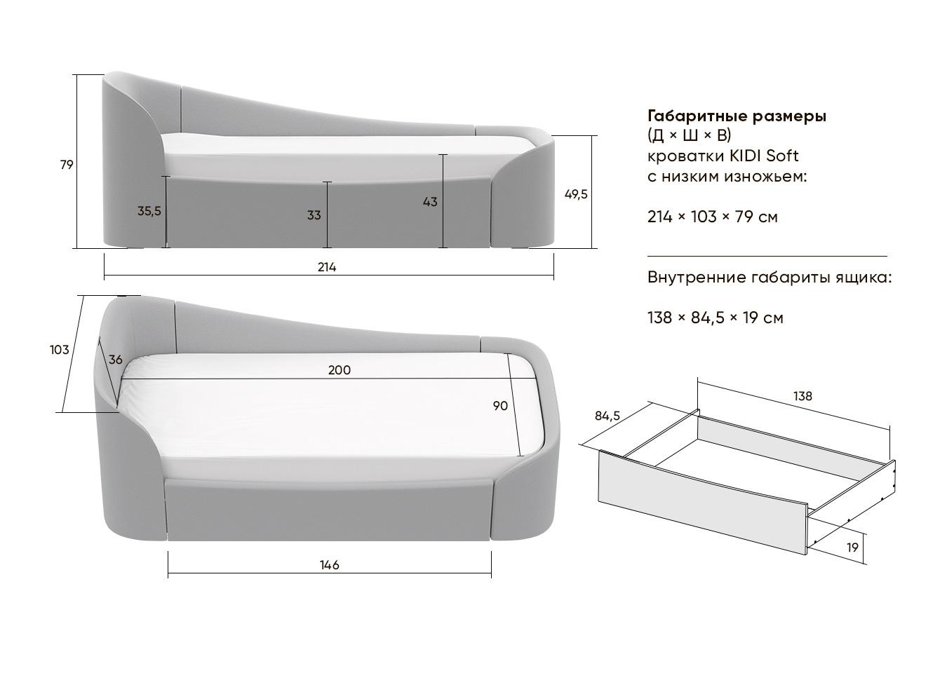 Диван-кровать KIDI soft (спальное место 90*200 см) Оснащен вместительным ящиком для хранения постельных принадлежностей или игрушек Закруглённые углы делают диван уютным и безопасным Материал: бук, береза Чехлы: ткань рогожка *Матрас докупается отдельно