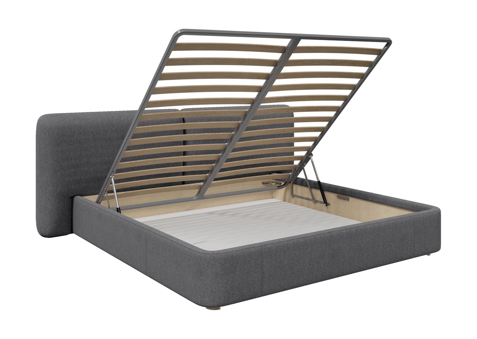 Двуспальная кровать Hub Soft с подъемным механизмом и ящиком для хранения Размер спального места 200*200 см Внешние габариты: 250*102*220 см Каркас выполнен из массива березы Обивка: ткань твид Ножки: бук