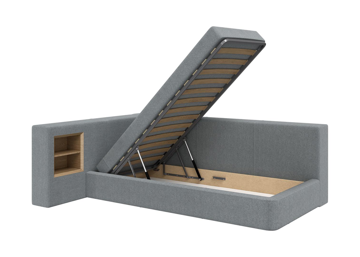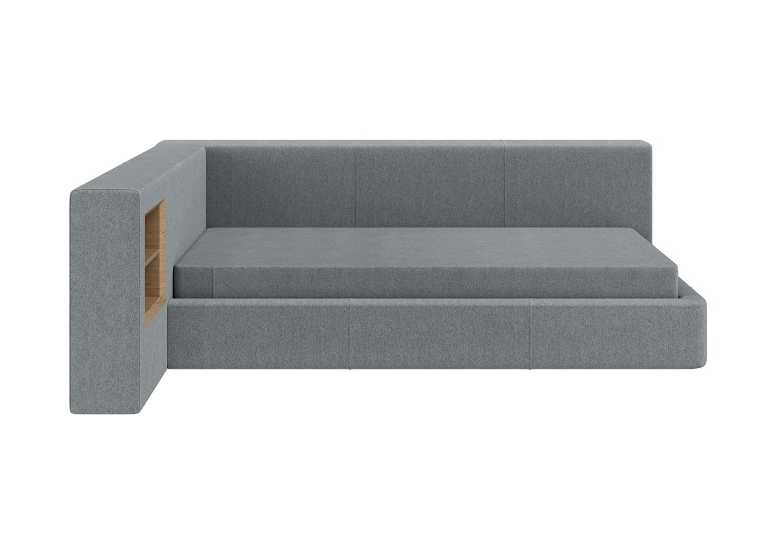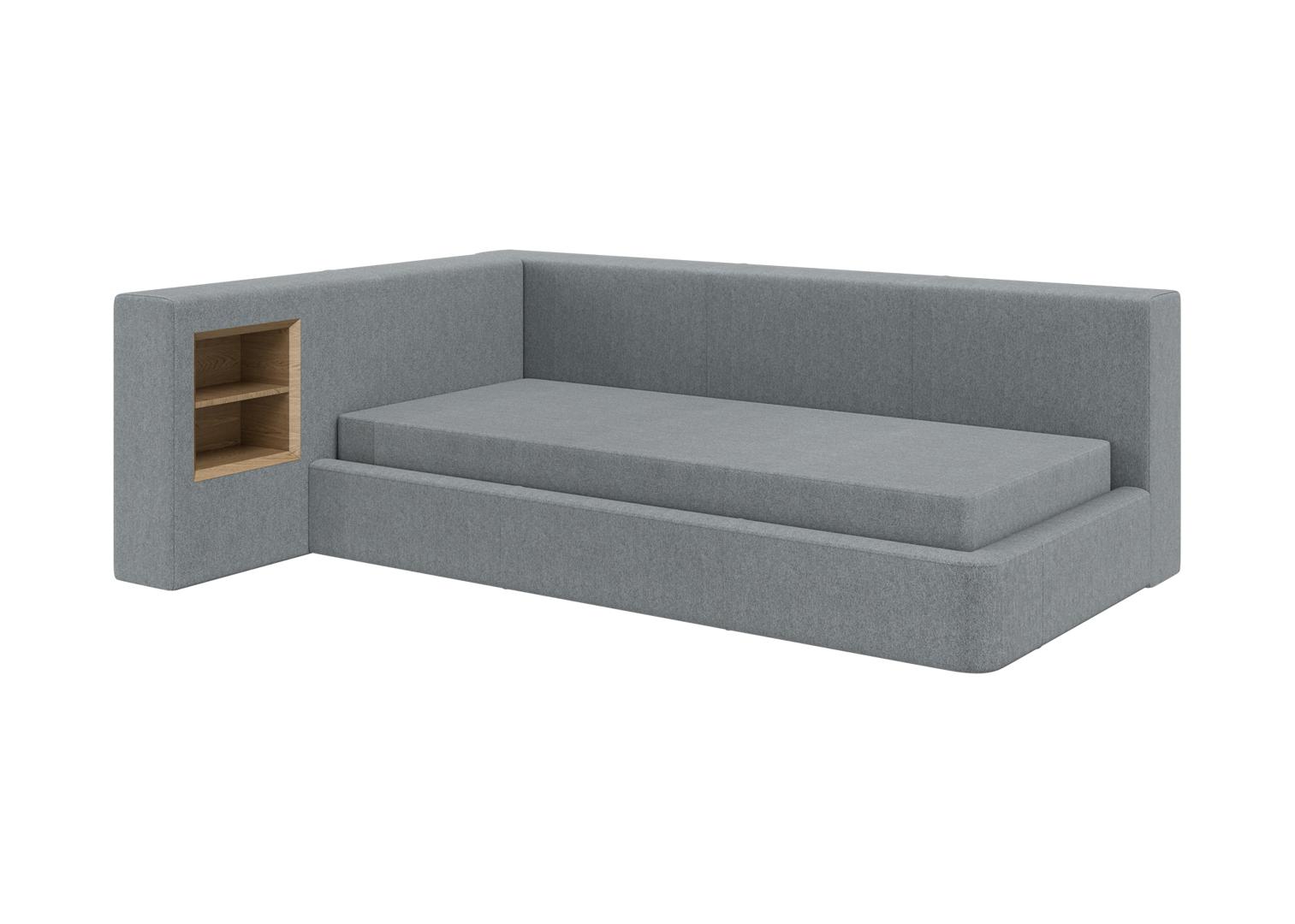 Диван-кровать Cube c нишей M Оснащена подъёмным механизмом, местом для хранения, нишей и розеткой Материал кровати: бук, береза Материал ящика: ЛДСП Текстильная обивка: ткань твид Размер спального места: 90х200 см Основание под матрас: ортопедические ламели *Матрас и чехол на матрас покупаются отдельно