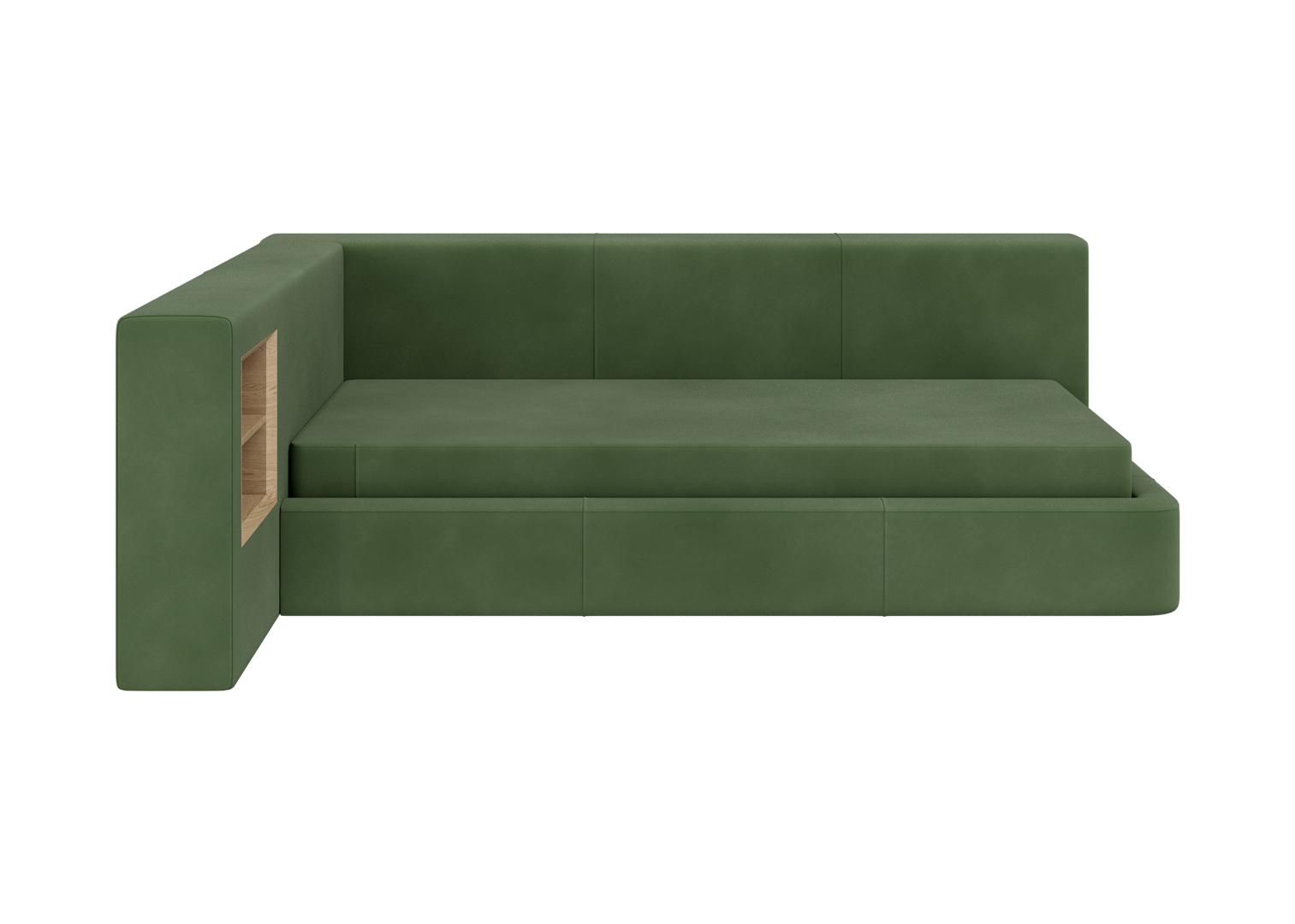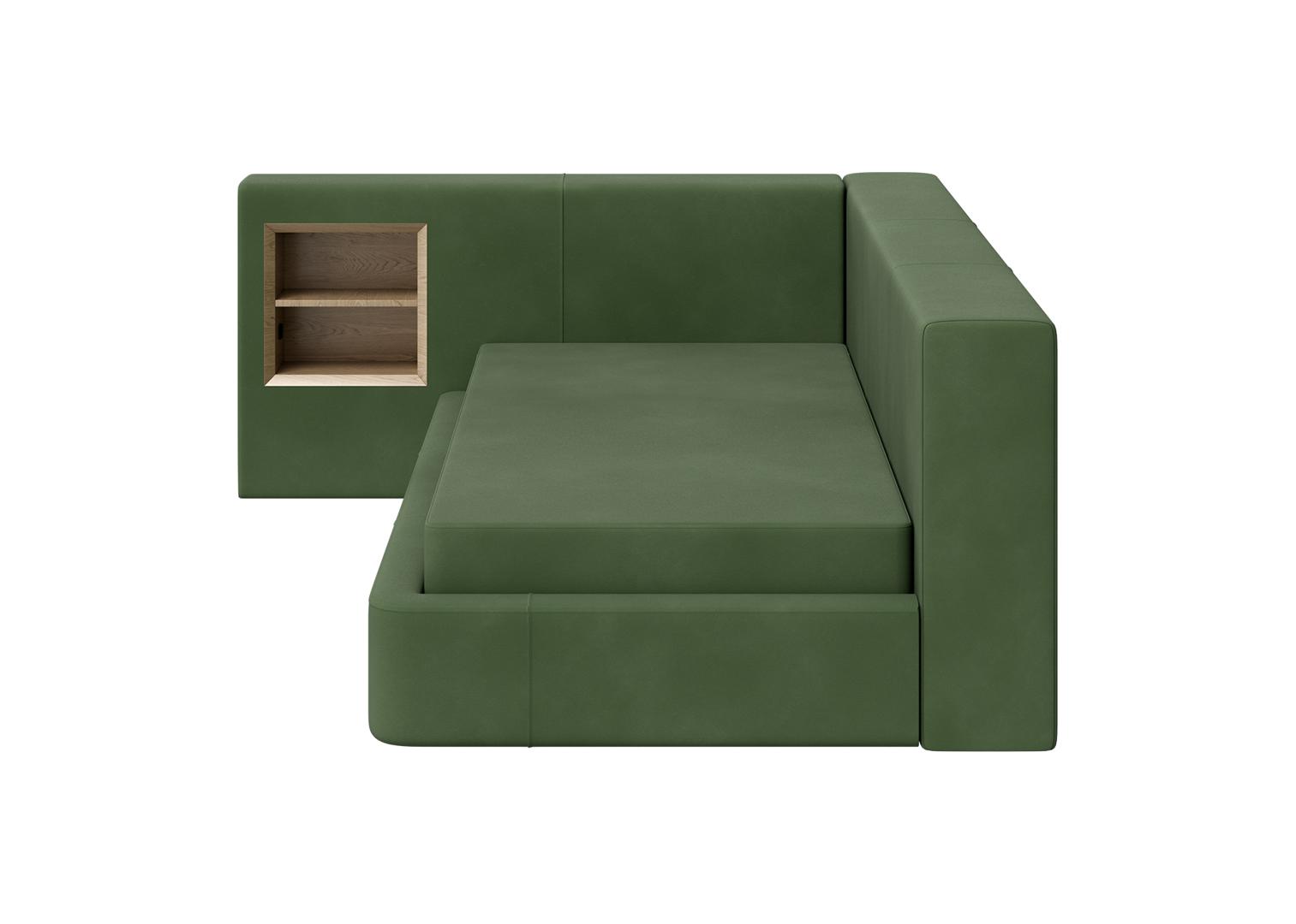 Диван-кровать Cube c нишей M Оснащена подъёмным механизмом, местом для хранения, нишей и розеткой Материал кровати: бук, береза Материал ящика: ЛДСП Обивка: Delux антивандальная мебельная ткань производства Бельгии (технология FiberGuard) Бархат, отличающийся особенной мягкостью, имеет невысокий шелковистый ворс и плотную, но пластичную основу Рекомендована любая сухая чистка (щадящая) (Р), кроме трихлорэтилена, не отбеливать Размер спального места: 90х200 см Основание под матрас: ортопедические ламели *Матрас и чехол на матрас покупаются отдельно