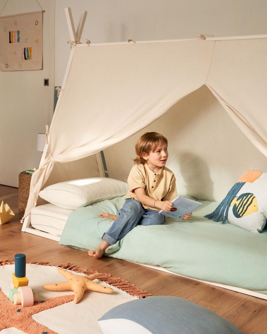 Лучший способ дать волю воображению вашего малыша — это кровать-вигвам из массива бука. Его дизайн в форме вигвама обеспечивает автономию и свободу движений вашего малыша, отчасти благодаря его небольшой высоте.