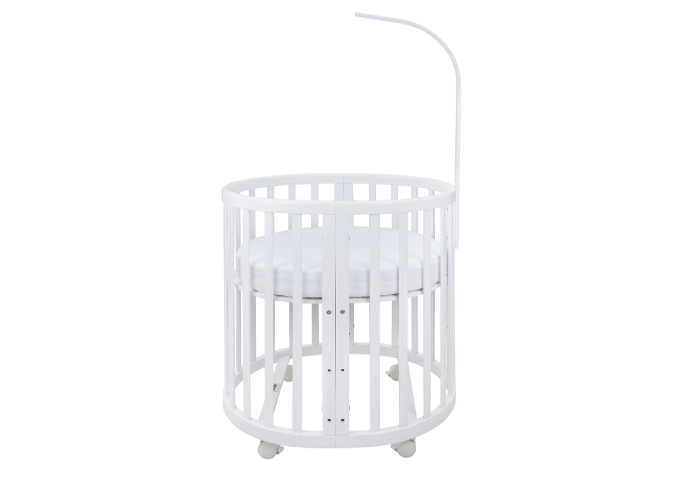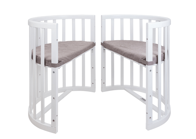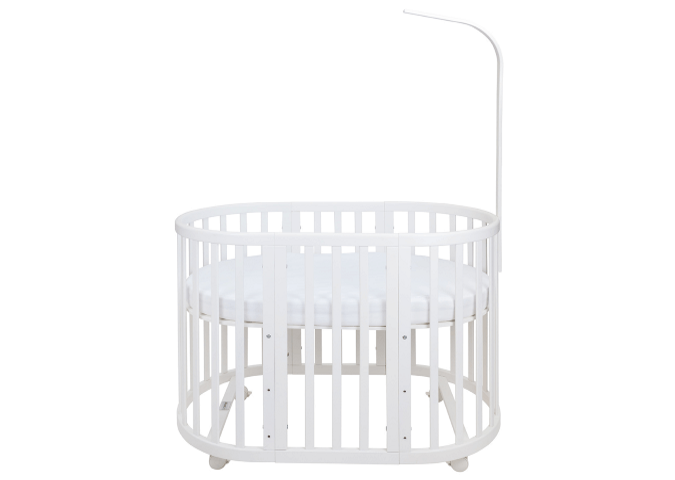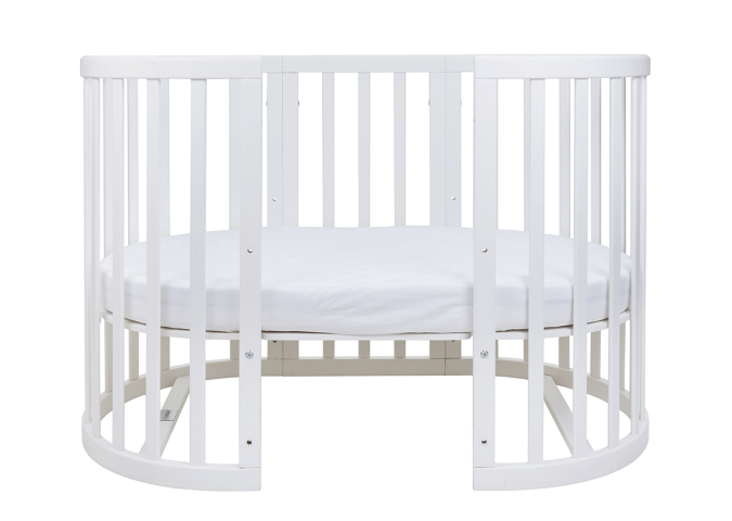 Кроватка-трансформер ellipsebed это уютное и безопасное пространство для сна, которое "растет" вместе с малышом с рождения до 7 лет. Полуцилиндры кроватки состоят из двух цельных дуг из массива бука, без разрыва на две части. Данная особенность сохраняет жесткость и надежность конструкции даже со снятой передней стенкой. Ширина кроватки позволяет проходить ей практически в любой дверной проем, благодаря чему, малыш всегда будет под присмотром. В базовый комплект кроватки ellipsebed входят следующие трансформации: - люлечка 70*80 (от 0 до 4-6 месяцев) - пеленальный столик (собирается одновременно с люлечкой) - кроватка 70*120 (собирается из люлечки и пеленального столика) - манеж (от 1 года до 2 лет) - диванчик 120 (от 2 лет до 3 лет) - два кресла Материал: массив бука В комплект так же входит держатель для балдахина из дерева. Дополнительно можно приобрести удлинение до 165 см (от 3 до 7 лет).