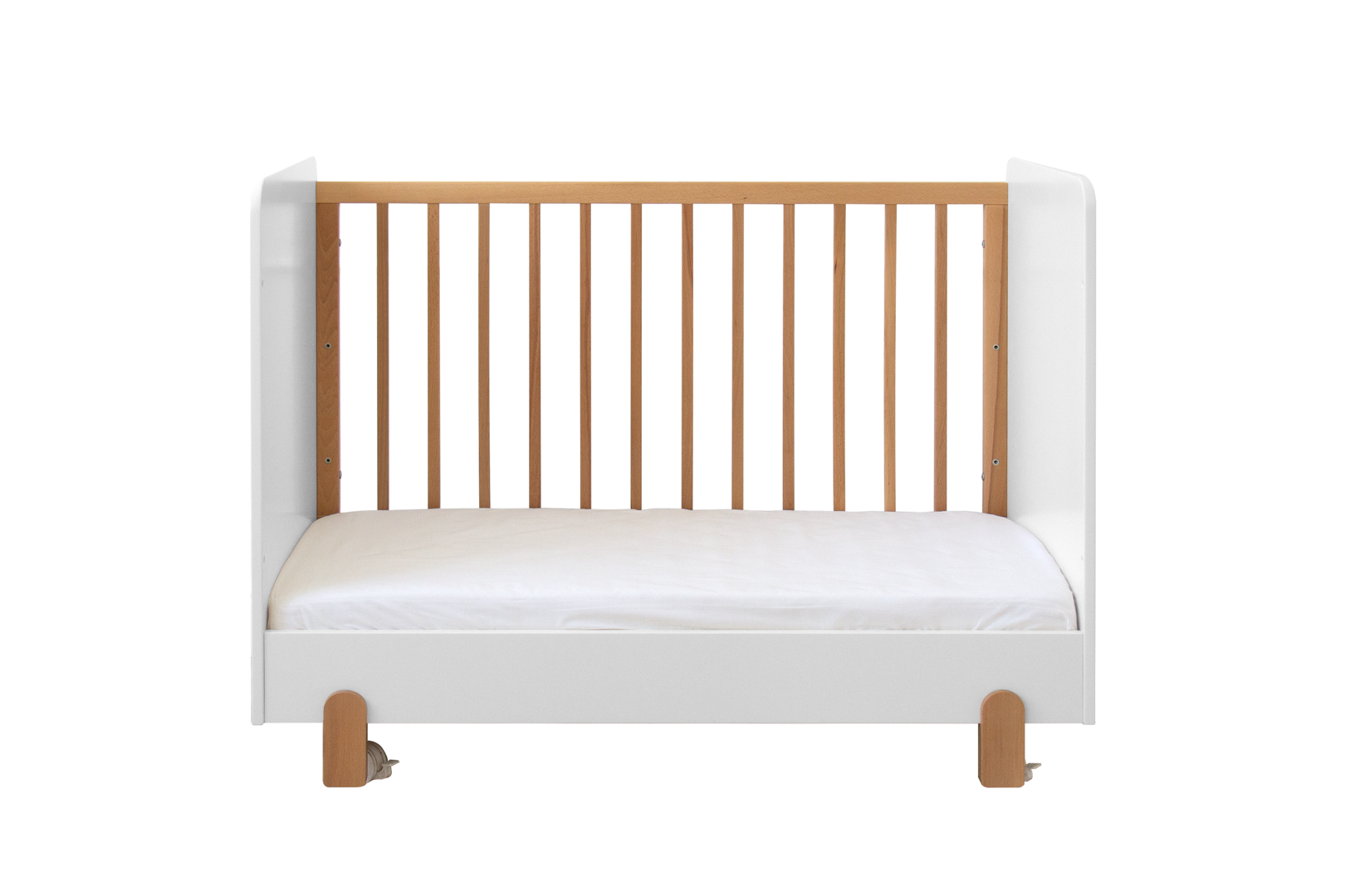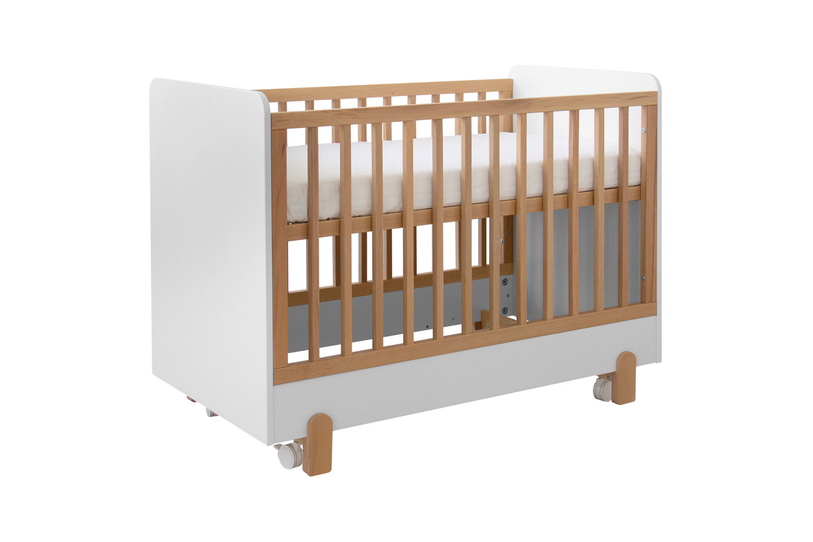 Милая небольшая кроватка в скандинавском стиле Ice-cream имеет уютный ненавязчивый дизайн, который прекрасно впишется в интерьер детской комнаты Спальное место: ширина 60 см длина 120 см У кроватки 3 положения уровня дня - верхнее положение для новорожденных - среднее положение для деток от 6 месяцев - нижнее положение для деток от 1 года (манеж) Кроватка оснащена скрытыми колесиками, поэтому вы можете свободно перемещать ее по квартире Материал: массив бука, мдф