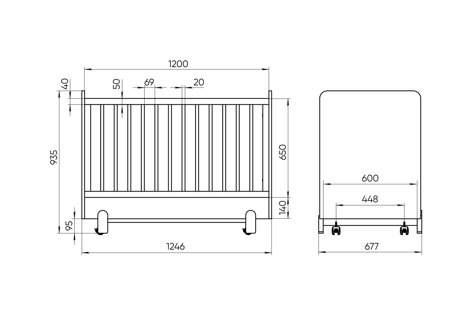 Милая небольшая кроватка в скандинавском стиле Ice-cream имеет уютный ненавязчивый дизайн, который прекрасно впишется в интерьер детской комнаты Спальное место: ширина 60 см длина 120 см У кроватки 3 положения уровня дня - верхнее положение для новорожденных - среднее положение для деток от 6 месяцев - нижнее положение для деток от 1 года (манеж) Кроватка оснащена скрытыми колесиками, поэтому вы можете свободно перемещать ее по квартире Материал: массив бука, мдф