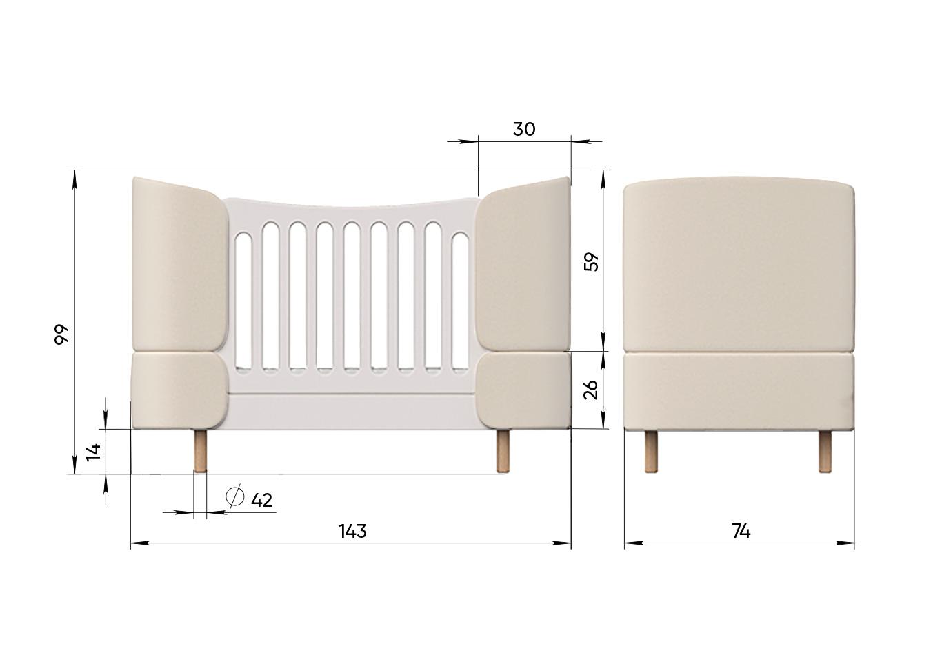 Кроватка Ellipsefurniture Кроватка-трансформер KIDI Soft (молочный, экокожа) арт. KD010207050101