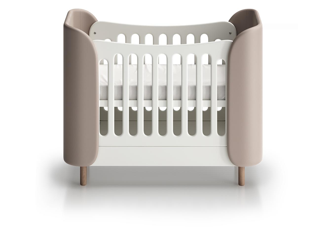 Кроватка KIDI Soft mini cпальное место 60*120 см с мягкими текстильными спинками Спальное место: ширина 60 см длина 120 см У кроватки 4 положения уровня дна - верхнее положение для новорожденных - среднее положение для деток от 6 месяцев - нижнее положение 1 для деток от 1 года (манеж) - нижнее положение 2 для деток от 1 года (диванчик, можно использовать с защитным бортиком) Материал: бук, береза, мдф Чехлы: экокожа *Матрас, маятник, защитный бортик докупаются отдельно