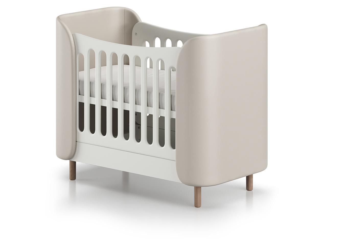 Кроватка KIDI Soft mini cпальное место 60*120 см с мягкими текстильными спинками Спальное место: ширина 60 см длина 120 см У кроватки 4 положения уровня дна - верхнее положение для новорожденных - среднее положение для деток от 6 месяцев - нижнее положение 1 для деток от 1 года (манеж) - нижнее положение 2 для деток от 1 года (диванчик, можно использовать с защитным бортиком) Материал: бук, береза, мдф Чехлы: экокожа *Матрас, маятник, защитный бортик докупаются отдельно