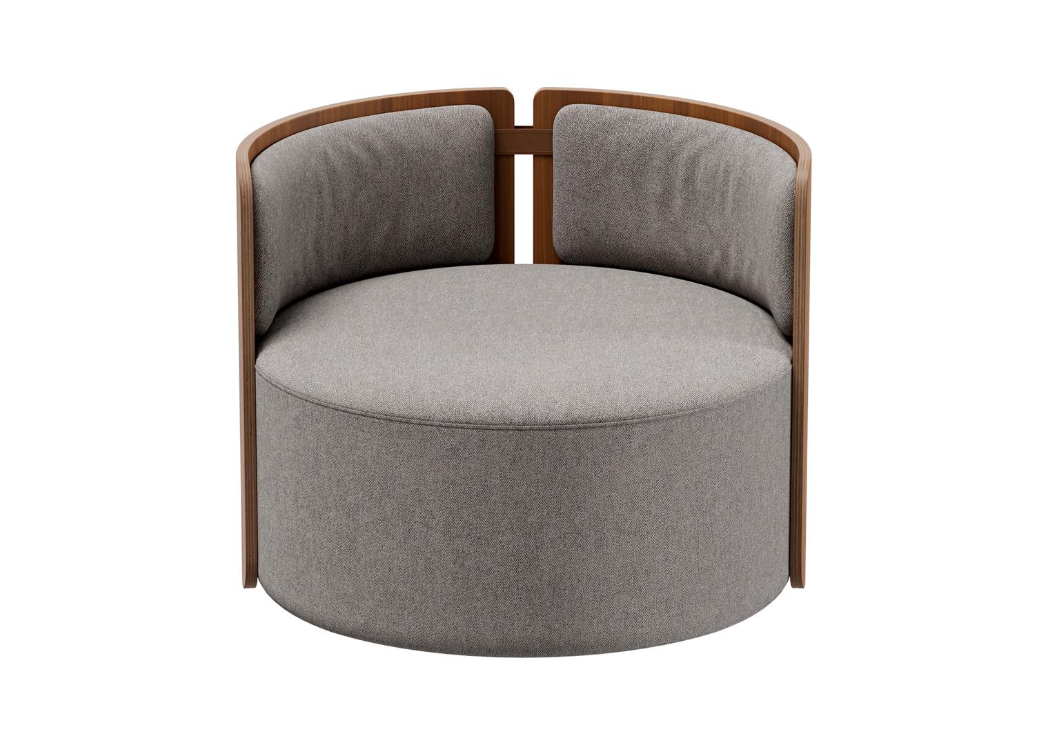 Кресло крутящееся Lagom 800 – универсальное решение для гостиной, спальни или общественного пространства. Модель элегантна, но в то же время динамична. Крутящий механизм, встроенный в основание, делает её отличным выбором для многофункциональных пространств. Каркас: фанера, шпон ореха Обивка: тткань твид Габариты: d 82,5 см, высота 65 см Вес: 30 кг