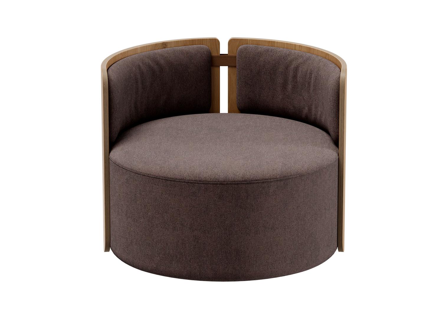 Кресло крутящееся Lagom 800 – универсальное решение для гостиной, спальни или общественного пространства. Модель элегантна, но в то же время динамична. Крутящий механизм, встроенный в основание, делает её отличным выбором для многофункциональных пространств. Каркас: фанера, шпон дуба Обивка: ткань твид Габариты: d 82,5 см, высота 65 см Вес: 30 кг