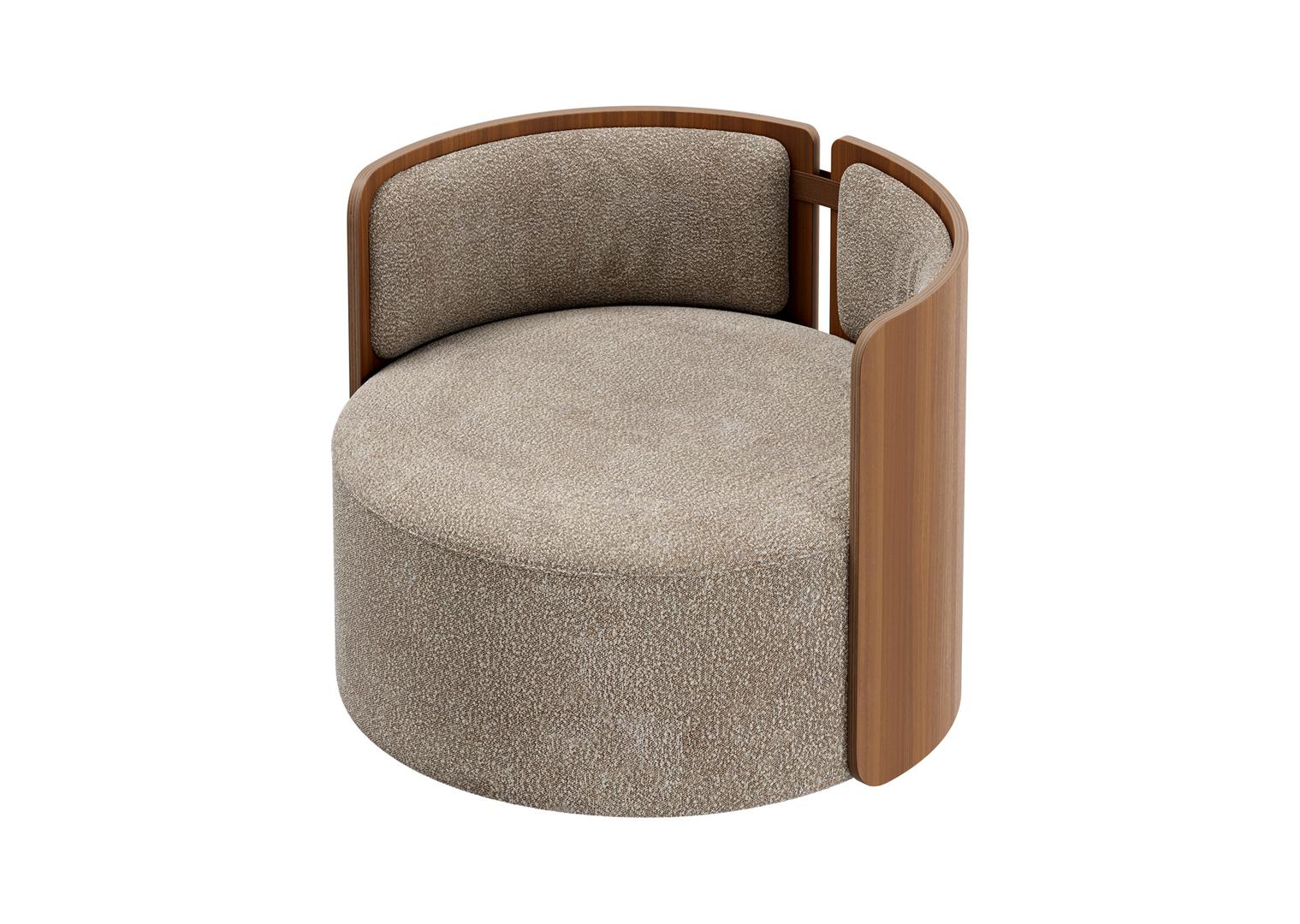 Кресло крутящееся Lagom 800 – универсальное решение для гостиной, спальни или общественного пространства. Модель элегантна, но в то же время динамична. Крутящий механизм, встроенный в основание, делает её отличным выбором для многофункциональных пространств. Каркас: фанера, шпон ореха Обивка: ткань букле Габариты: d 82,5 см, высота 65 см Вес: 30 кг
