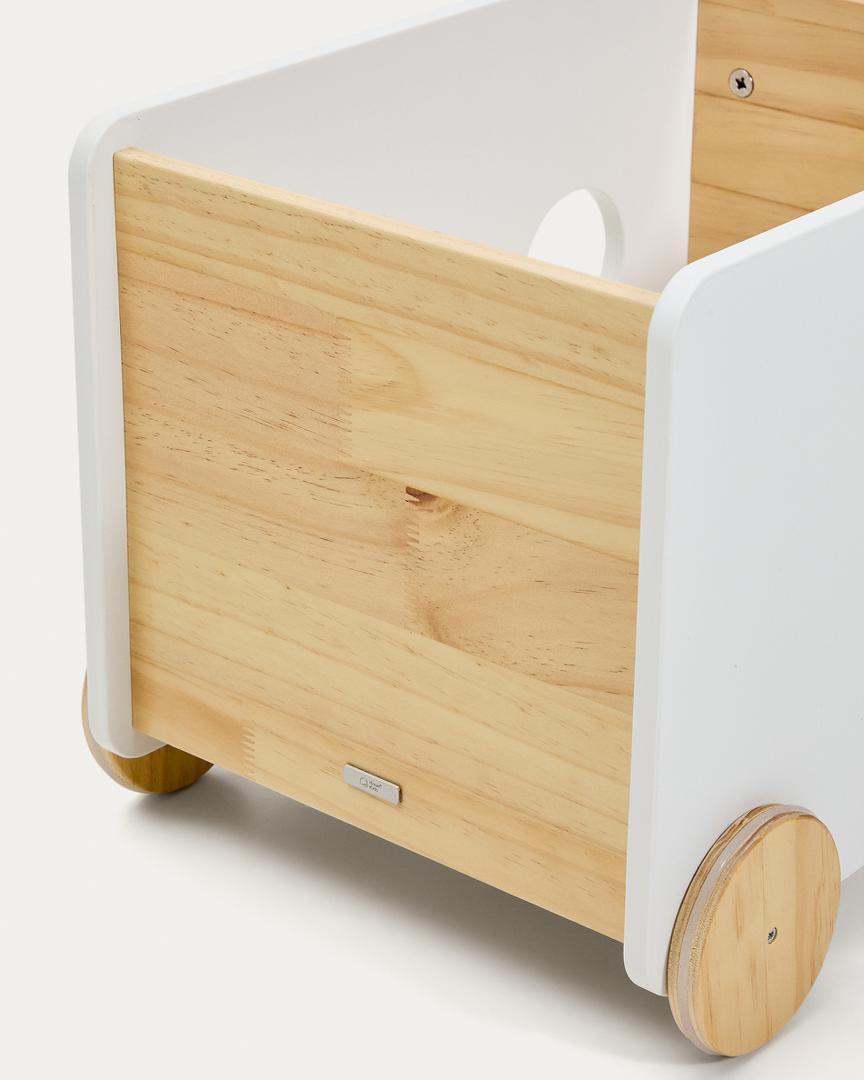 Тележка из массива сосны с натуральной отделкой и МДФ с белым лаком. Краска на водной основе - подходит для самых маленьких и колес, снабженных полосой силикона для защиты от повреждения пола