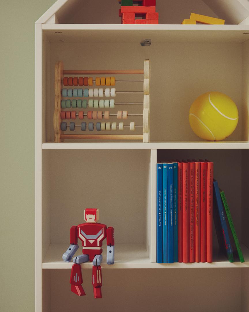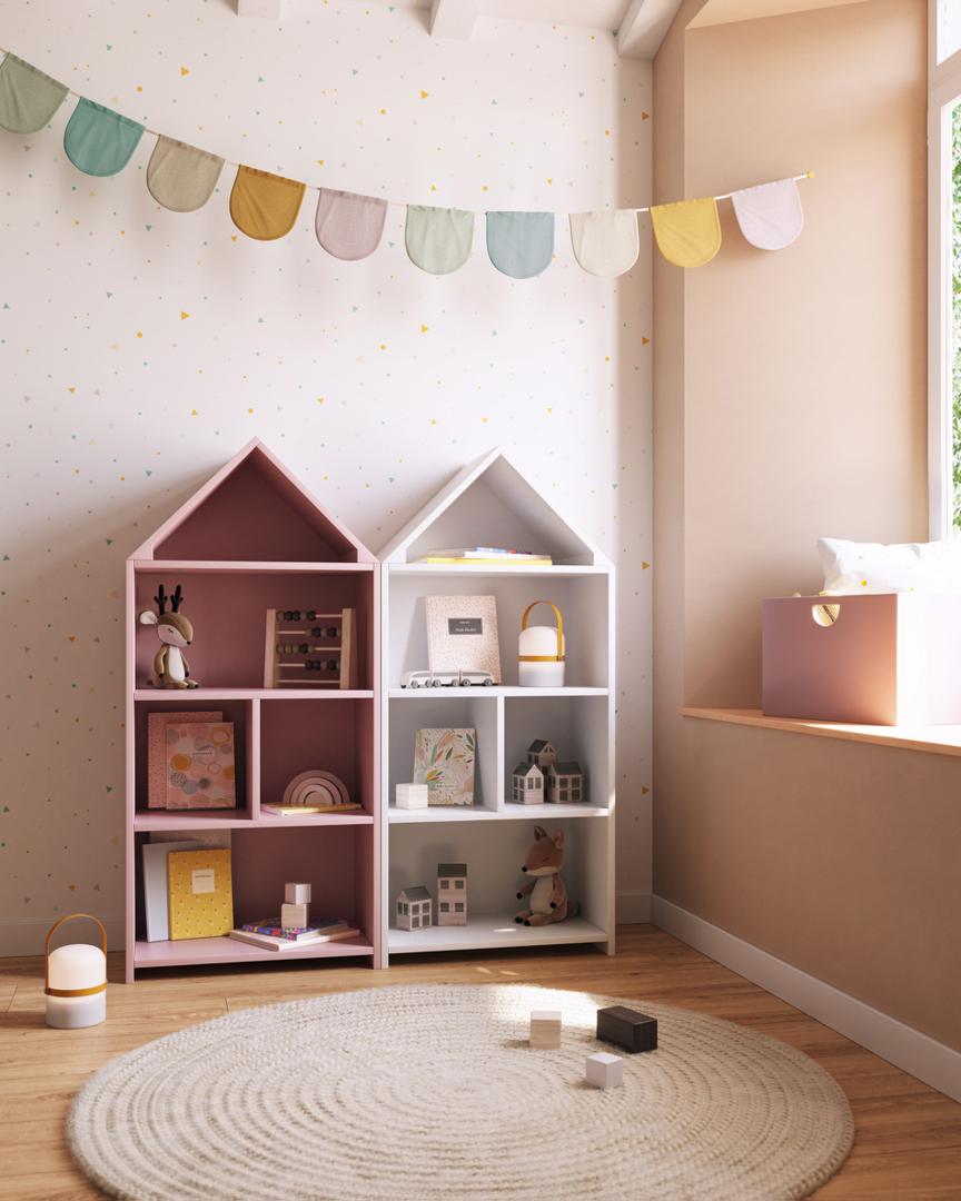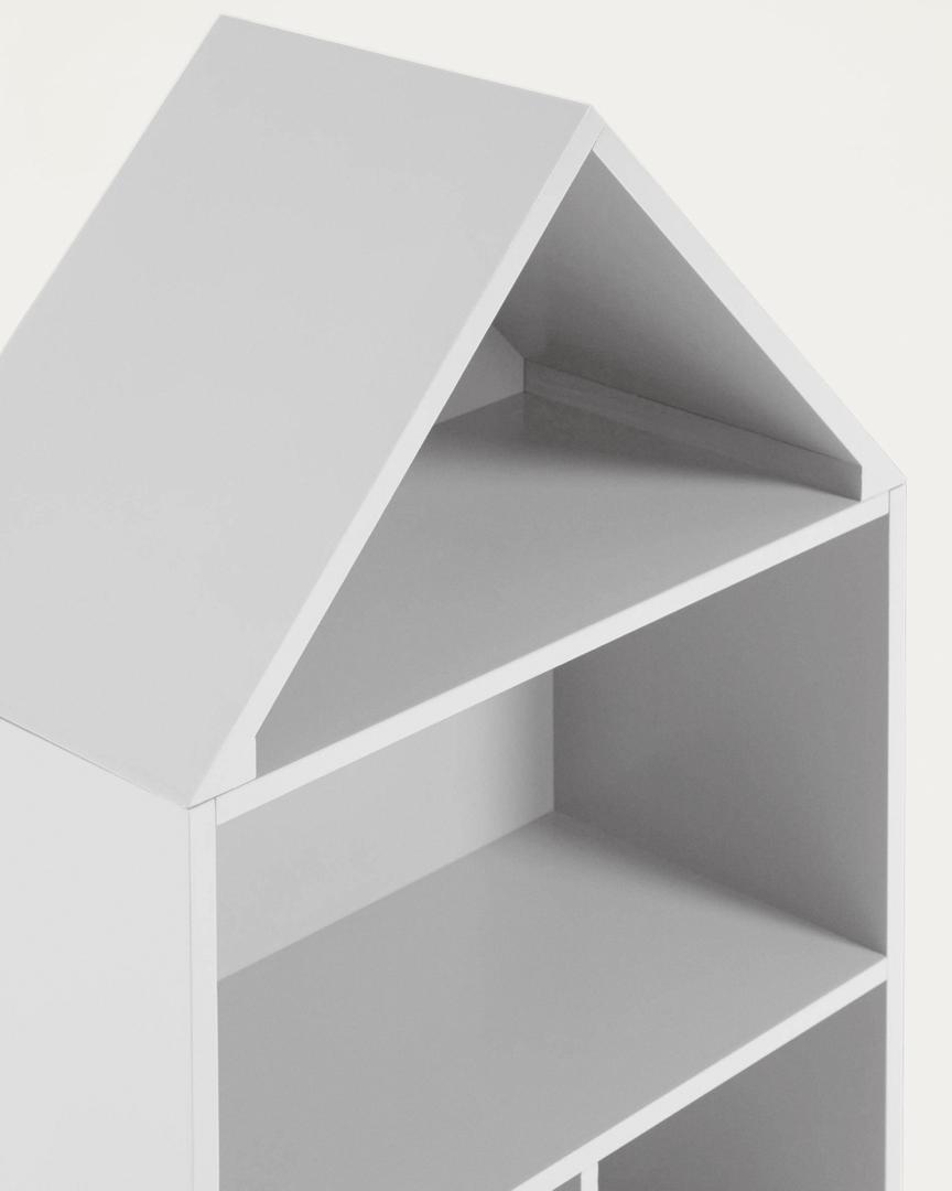 Детский стеллаж Celeste от фабрики La Forma (ex Julia Grup) - чудесный домик для детской комнаты. Детский стеллаж Celeste – декоративный и практичный предмет мебели для спальни вашего малыша. Он идеально подойдет для помощи детям в поддержании порядка в своей комнате, а значит, любимые книги и вещи.будут всегда под рукой! Стеллаж полностью сделан из МДФ белого цвета. Он представляет собой коробку в виде дома, которая полками поделена на пять отделений. МДФ имеет толщину 2 см. Каждый элемент соединен с соседним стык в стык и окантован, за счет чего безопасность и надежность стеллажа на высоком уровне. Высота ножек - 2,5 см. Они образованы боковыми стенками, поэтому стеллаж устойчив и равномерно распределяет нагрузку. Максимальная нагрузка не должна превышать 20 кг. Размеры: ширина – 50 см, высота – 105 см, глубина – 26 см. Вес – 12,5 кг. Стеллаж предназначен только для использования в помещениях. Сборка не требуется.