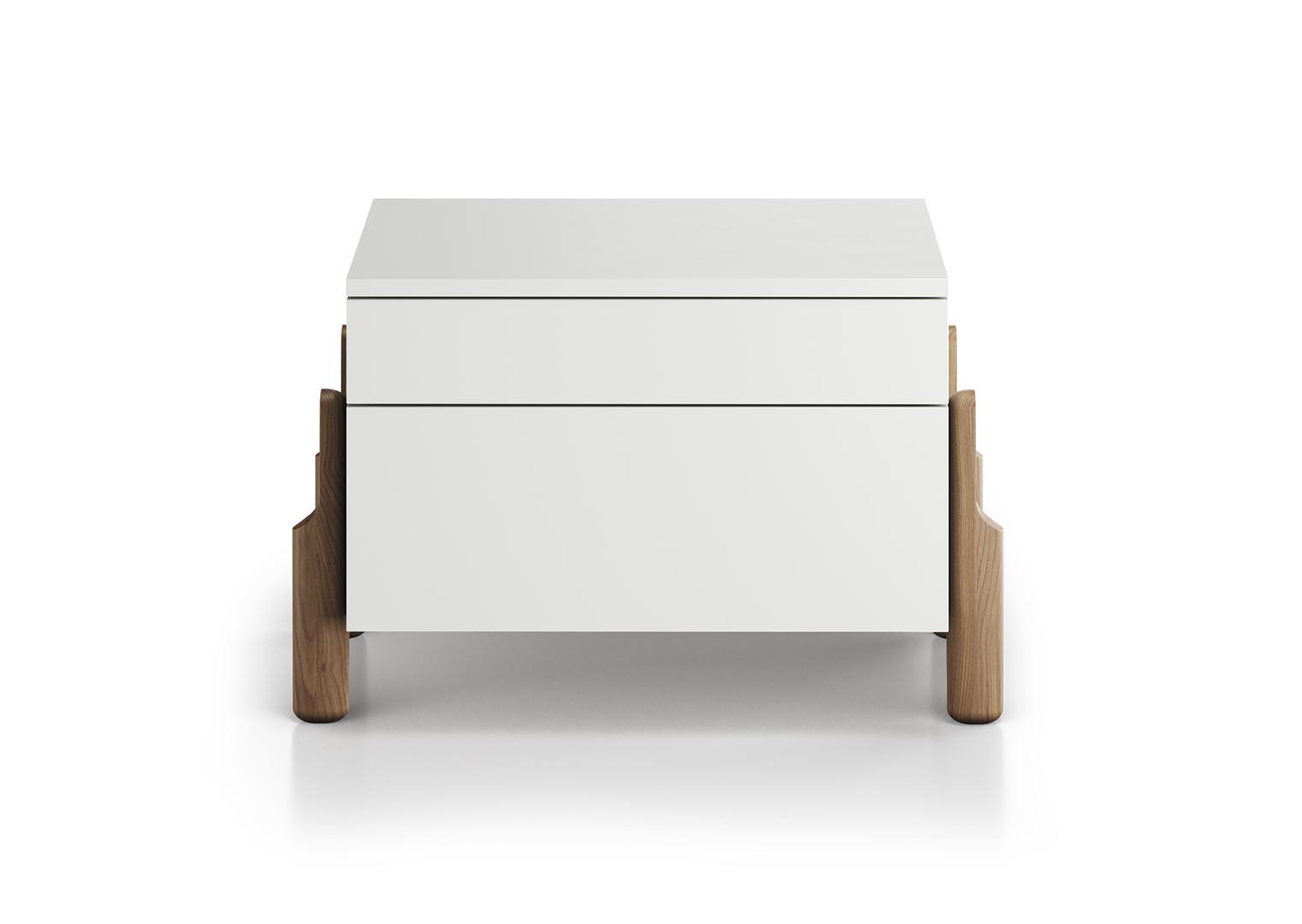 Тумба прикроватная Basic 2 ящика ширина 60 см Высота: 40 см Ширина: 60 см Глубина: 42 см Вес: 25 кг Материал: МДФ Каркас ящиков: ЛДСП Покрытие корпуса: эмаль RAL 9003 Ножки: дуб
