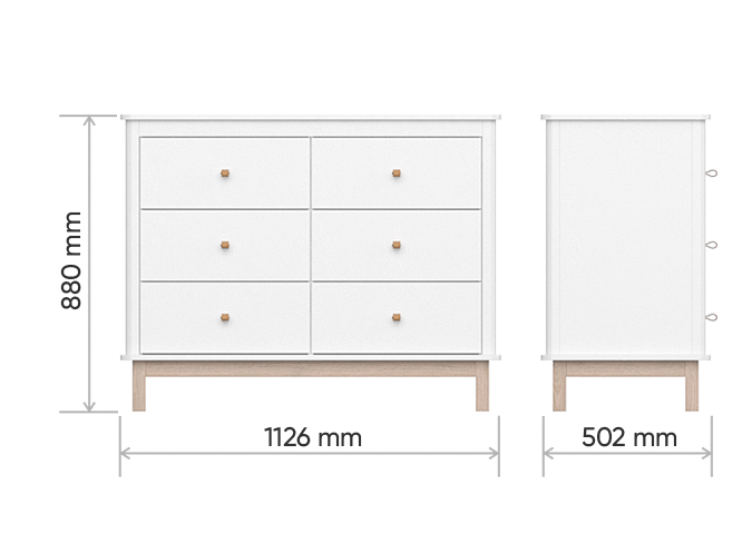 Комод classic с 6 ящиками имеет прочное основание из массива бука, корпус из безопасного мдф под эмалью. Шесть ящиков на бесшумных направляющих с доводчиками. Ручки из натуральной кожи. Дополнительно можно заказать раскладную пеленальную доску. Доска надежно крепится к комоду, при этом не портит его поверхности.