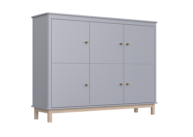 Низкий шкаф classic визуально не загромождает пространство комнаты, но при этом он очень вместительный. Благодаря невысокому расположению полок и вешалки для одежды, ребенку будет удобно им пользоваться самостоятельно. Материал: массив бука/мдф. Ручки из натурально кожи.