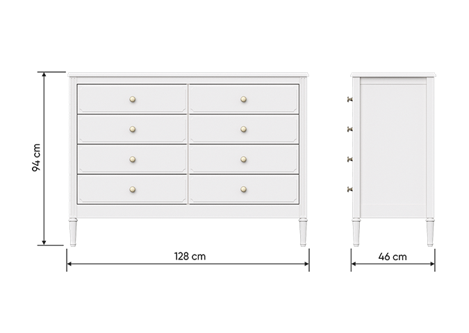Комод Elit в современном классическом стиле станет украшением любой комнаты У комода прочный каркас из массива бука, корпус из безопасного мдф под эмалью Восемь ящиков на бесшумных направляющих с доводчиками Дополнительно можно заказать раскладную пеленальную доску Доска надежно крепится к комоду, при этом не портит его поверхности